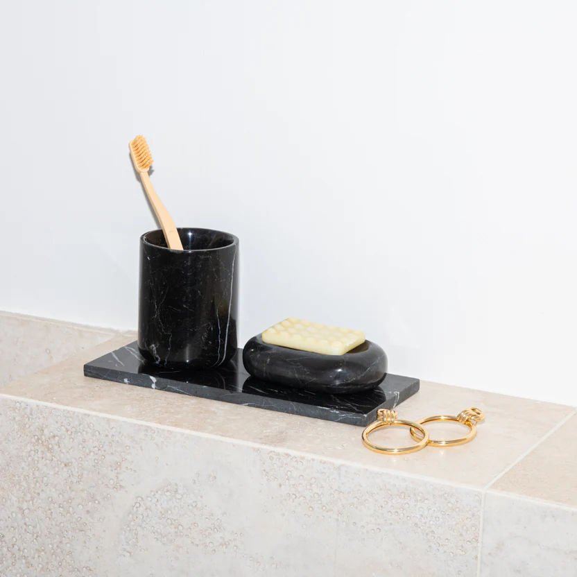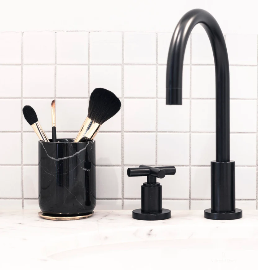 Utilisez ce pot en marbre noir pour ranger vos brosses à dents, vos stylos, vos pinceaux de maquillage ou tout ce que vous souhaitez, tout en ajoutant une touche de luxe. Son design épuré apporte une note d'élégance à n'importe quelle pièce tout en offrant un espace de rangement pratique.