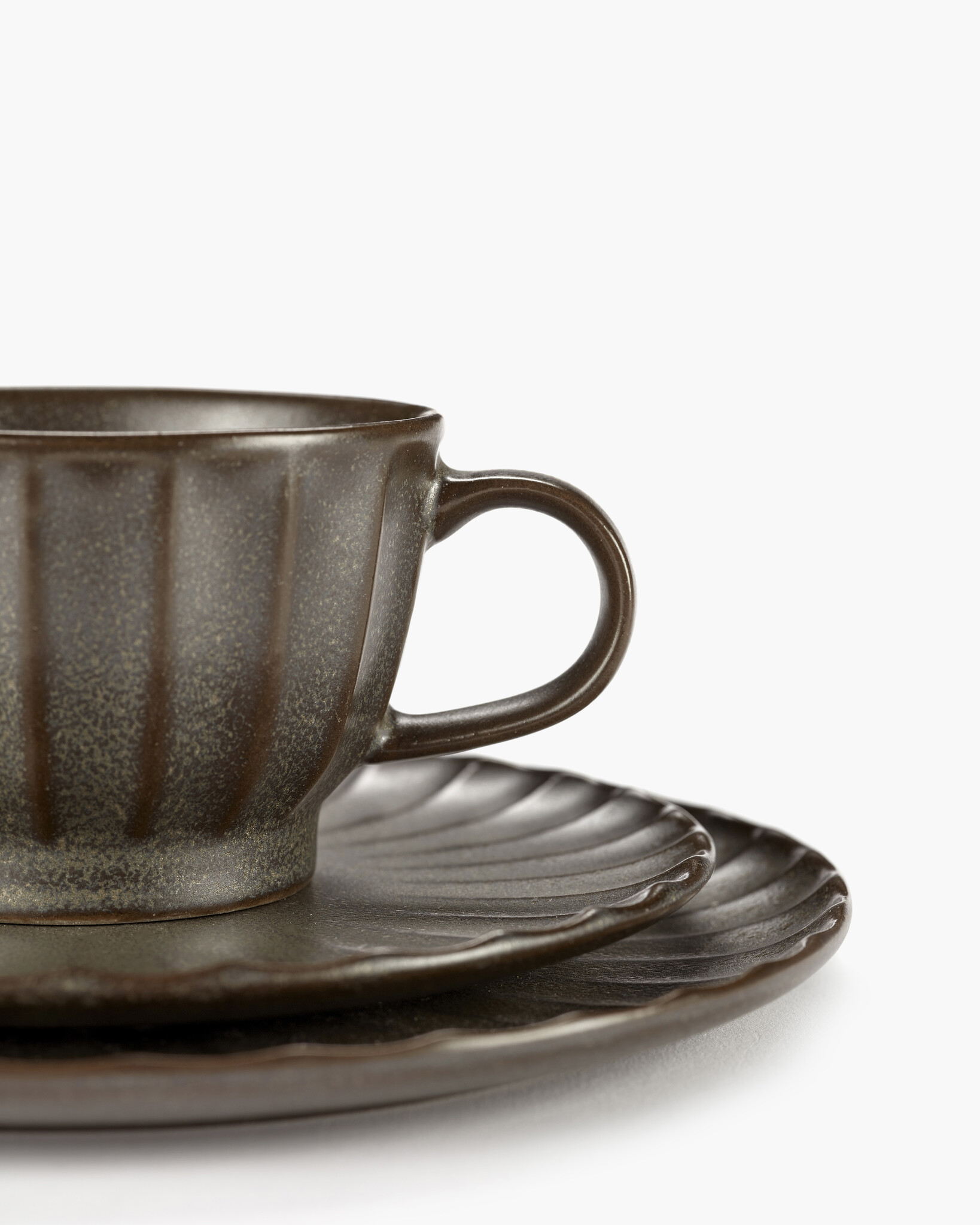 Ces tasses à expresso vertes de la collection Inku de Sergio Herman associent un design nervuré à une touche wabi-sabi. Parfaites pour un café ou un thé relaxant.. Les tasses sont emballés par 4 dans un giftbox.