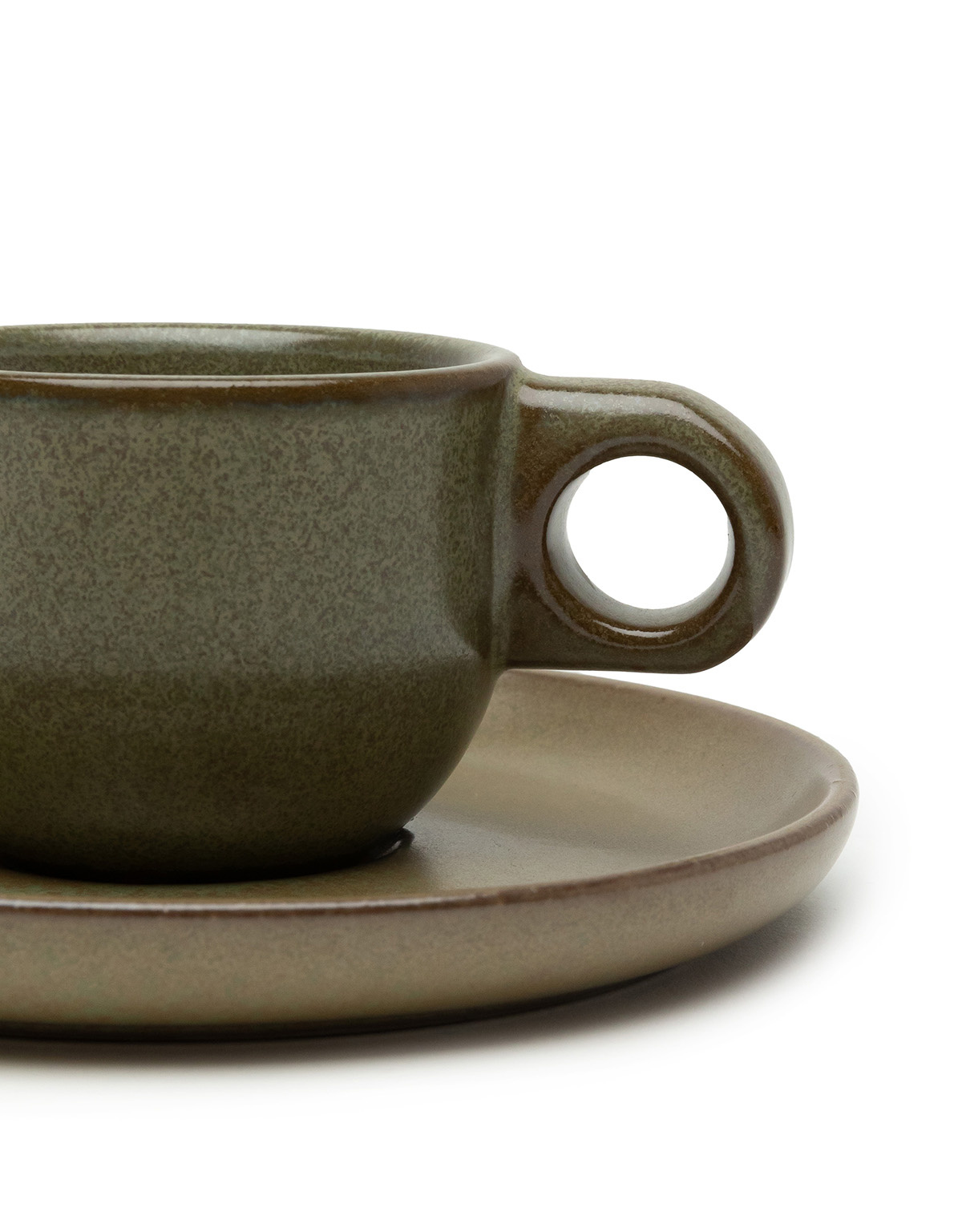 Surface de Sergio Herman pour Serax est une étonnante série de plats en grès aux trois aspects différents : Camo Green, Rusty Brown et Indi Grey. Je suis d'avis que les différentes tailles et formes ont toutes leur propre fonction. C'est pourquoi, afin de stimuler la créativité, nous avons créé une série aussi vaste que possible de tasses, d'assiettes, de bols et de plats de toutes tailles, du plus bas au plus haut, du plus petit au plus grand. Un repas bien servi est encore meilleur". Les cuvettes et soucoupes sont emballés par 4 dans un giftbox.