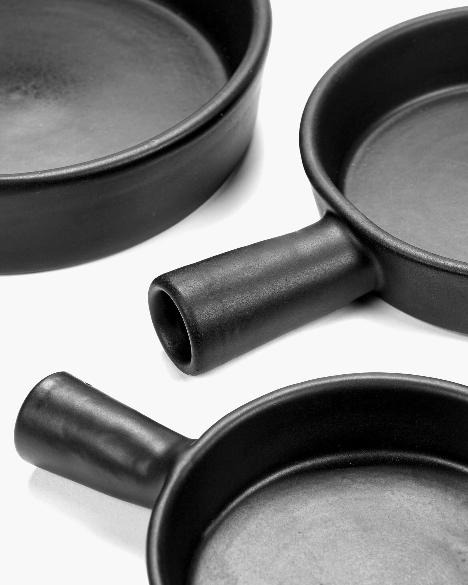 La collection Surface comprend également ces poêles en terre cuite noire de différentes tailles, qui ont été spécialement conçues pour la cuisine au four. L'accent a été mis sur la convivialité et la durabilité, sans faire de concessions en termes d'esthétique. La poêle emballés dans un giftbox.