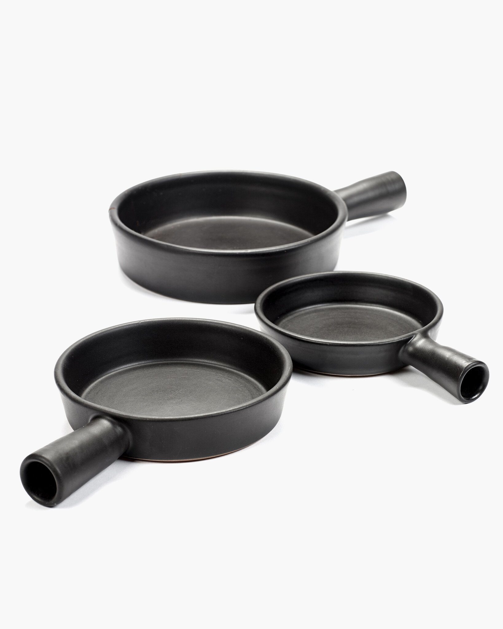 La collection Surface comprend également ces poêles en terre cuite noire de différentes tailles, qui ont été spécialement conçues pour la cuisine au four. L'accent a été mis sur la convivialité et la durabilité, sans faire de concessions en termes d'esthétique. La poêle emballés dans un giftbox.