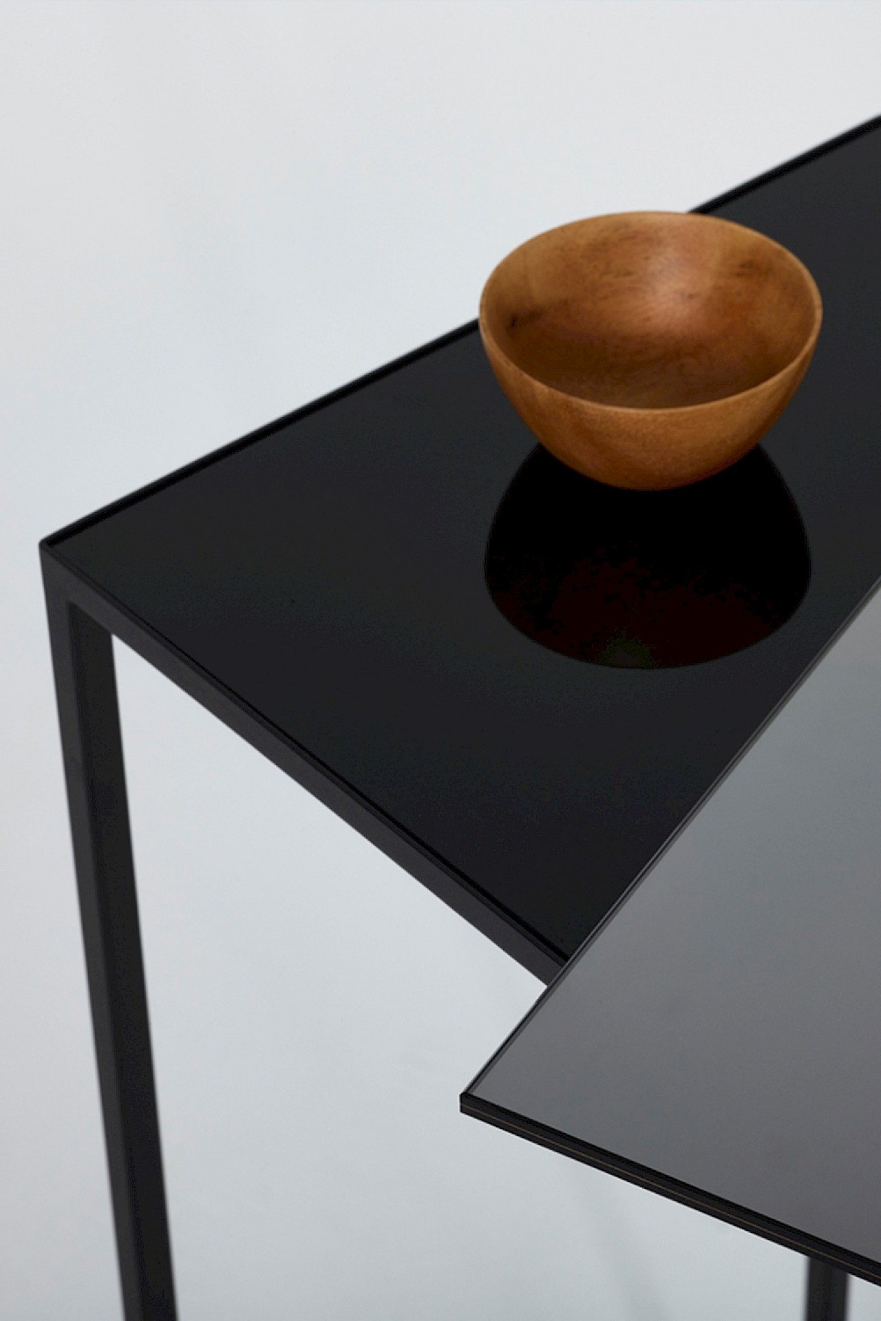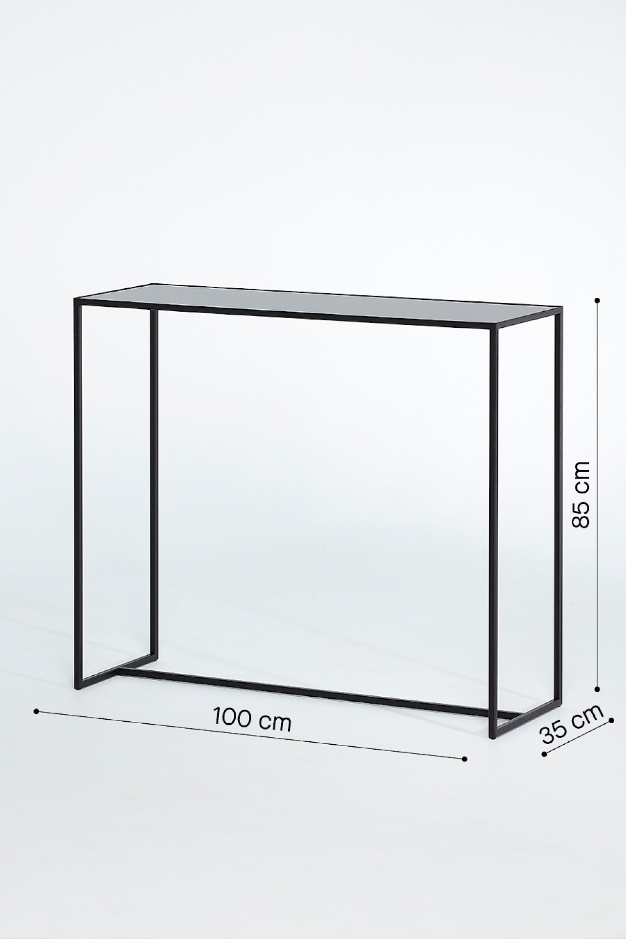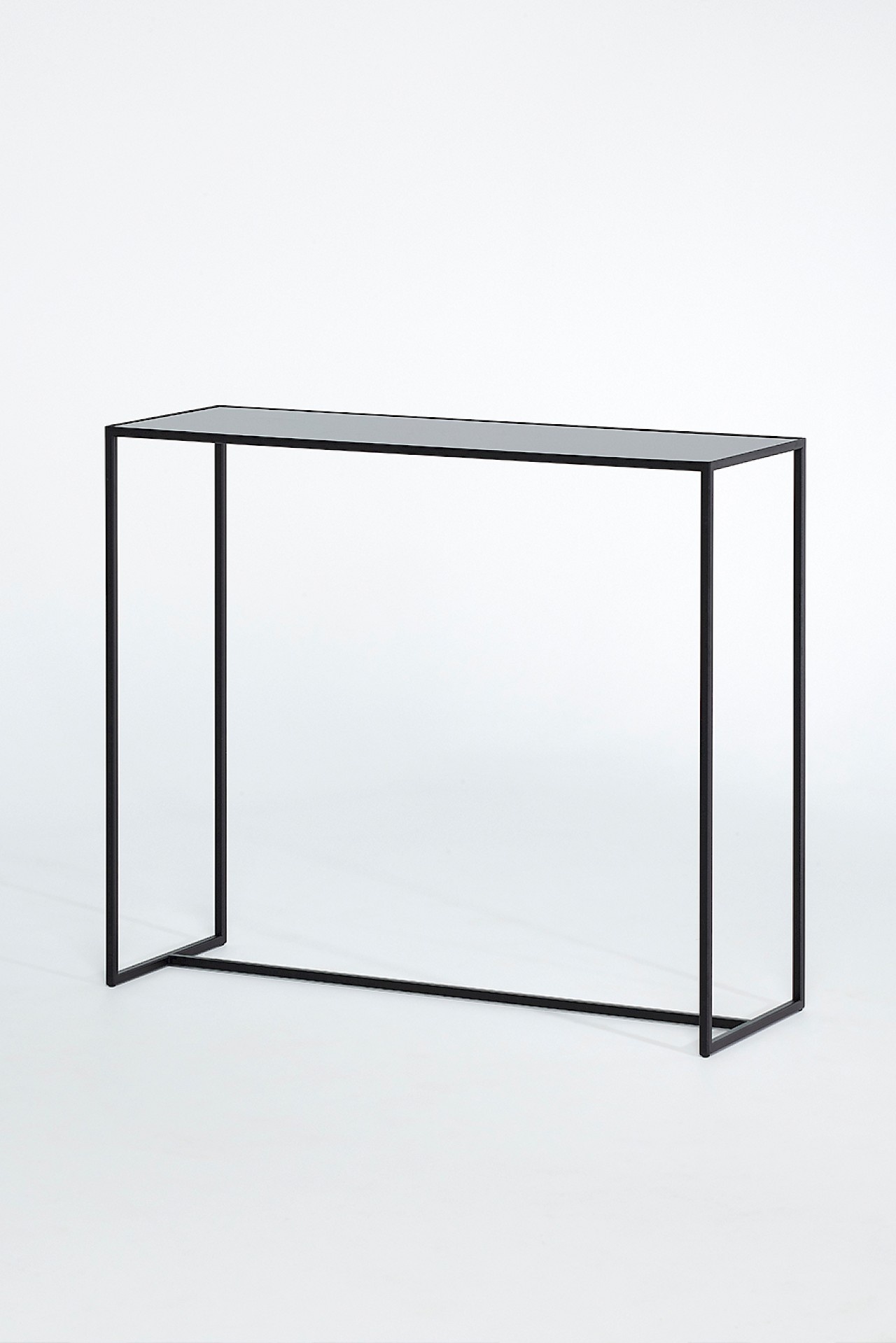 La table 'Mesa' Black Console est une console élégante et moderne conçue par Annemie Vanzieleghem. Son piètement en métal laqué noir lui confère un look épuré et stylé, tandis que son plateau miroir original ajoute une touche unique.
