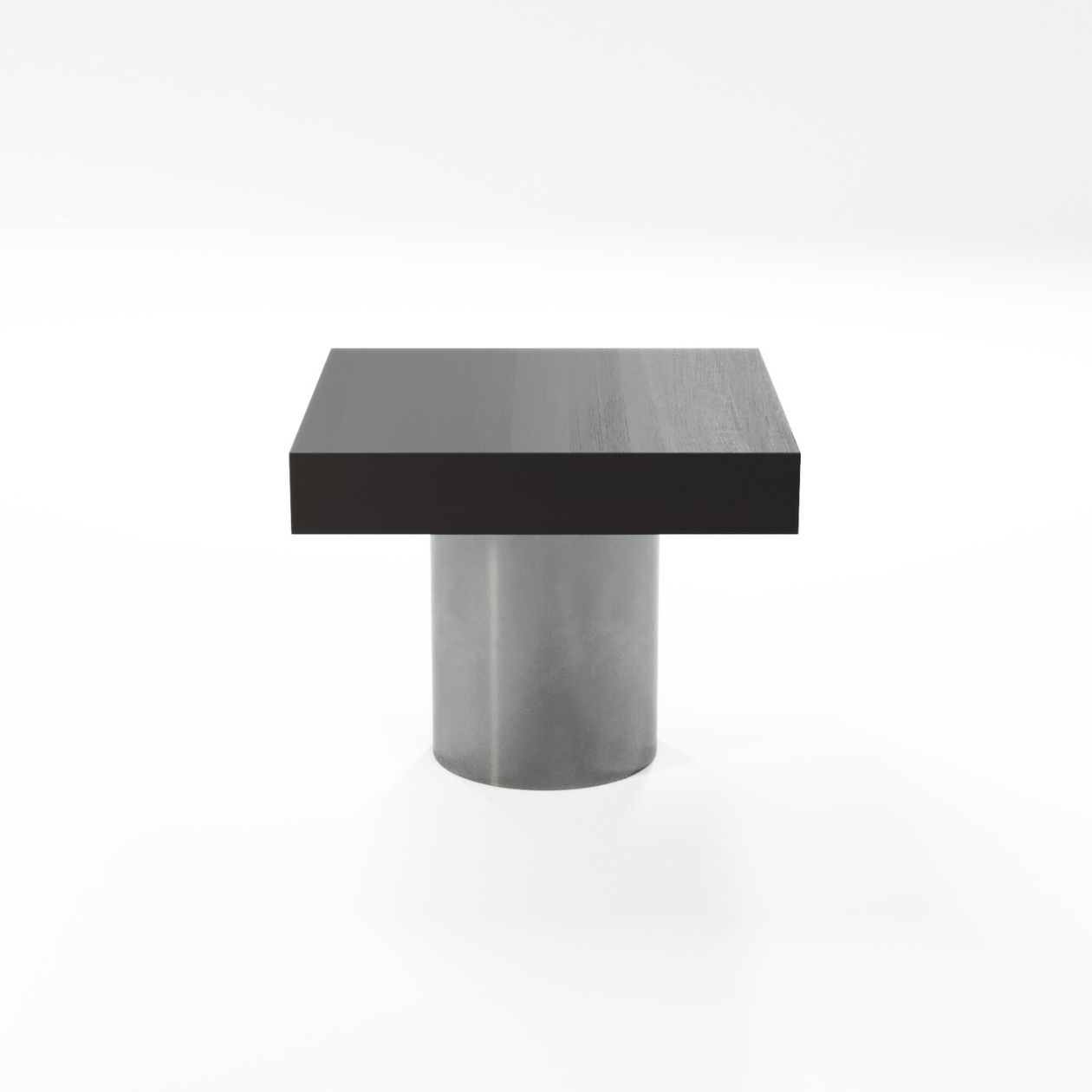 La table d'appoint MODENA est une table moderne avec un clin d'œil aux années 70. La base a une finition polie noir et le plateau est en placage de bois fumé. Une table basse assortie est également disponible.