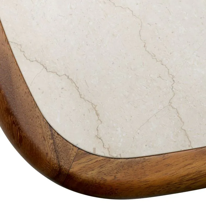 Bois d'acajou massif | finition caramel | plateau en marbre beige