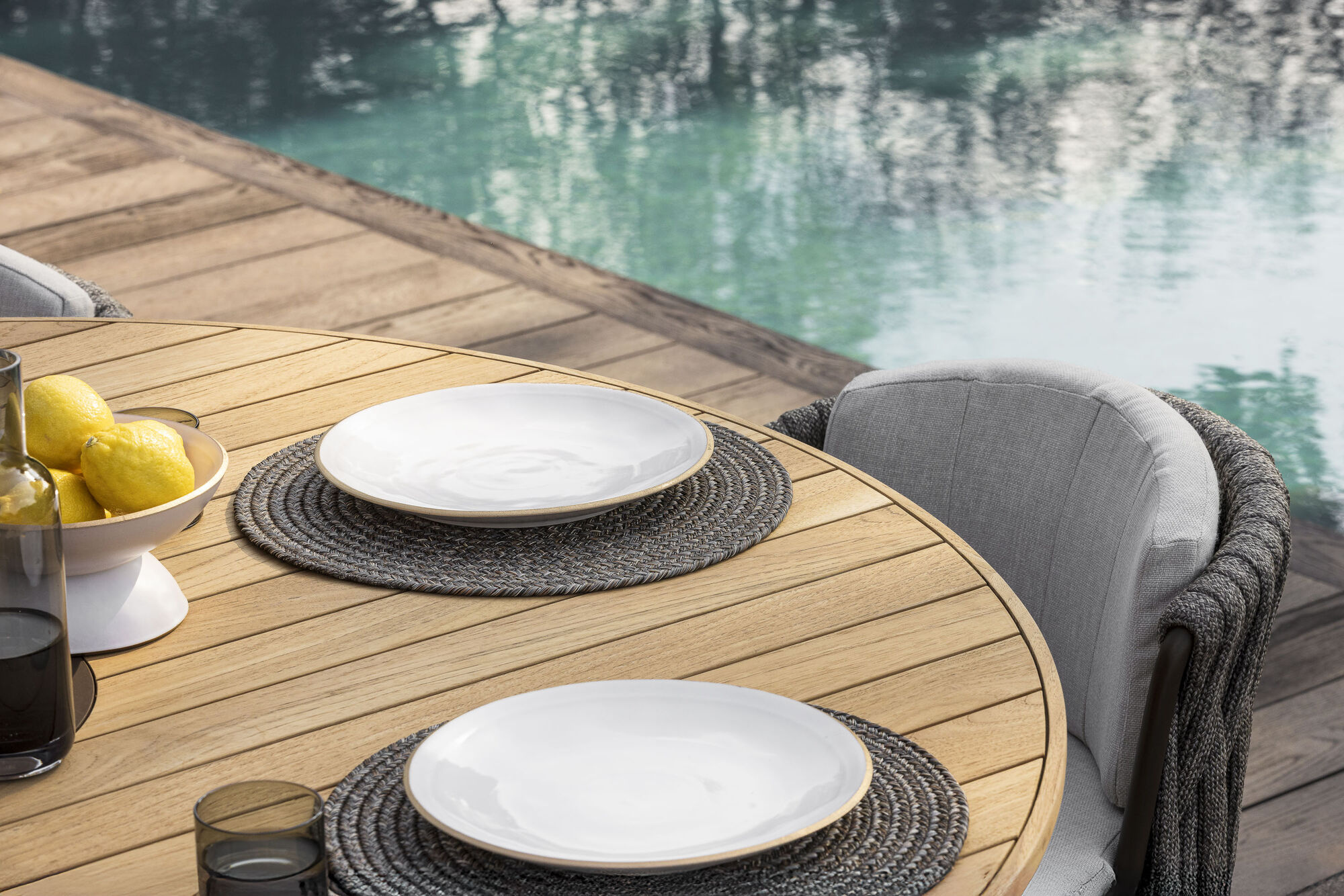 La série de tables Loreto montre comment la force et la subtilité peuvent se renforcer mutuellement. Le design se caractérise par un pied arrondi en bronze qui forme une base calme et raffinée sur laquelle le plateau en teck semble flotter avec élégance. Le plateau est composé de lattes de teck placées avec précision, encadrées par un bord en teck qui épouse le motif épuré et confère à la table un aspect harmonieux et haut de gamme. Le résultat est un langage formel moderne, mais chaleureux, qui enrichit chaque espace extérieur d'équilibre et de clarté. Au sein de la série, la table ovale de trois mètres aux formes organiques occupe une place particulière. Cette variante généreuse ajoute une ligne fluide et naturelle à la collection et constitue sans effort un point central accueillant pour les longs dîners ou les réunions conviviales. La série comprend trois formes, chacune avec son propre caractère : ronde, ovale et carrée. Les versions rondes et ovales sont disponibles en version dining, high dining et low dining, afin que chaque configuration puisse être adaptée à votre mode de vie en extérieur. Il existe également deux tables basses qui peuvent être superposées pour créer une subtile superposition dans le salon. Un élément caractéristique de presque toutes les tables Loreto est le refroidisseur à vin intégré. Celui-ci peut être recouvert d'un cache en aluminium bronze, ce qui permet à la table de conserver un design épuré et continu, avec ou sans refroidisseur. Cette fonctionnalité bien pensée rend les longues soirées en plein air encore plus agréables, sans nuire à l'atmosphère paisible. Grâce à la combinaison du teck chaleureux, des tons bronze et des proportions claires, la série de tables Loreto s'harmonise parfaitement avec la collection lounge et les autres chaises Borek. Chaque table apporte calme, raffinement et un look intemporel qui s'harmonise avec les espaces extérieurs élégants, du patio intime au jardin spacieux.