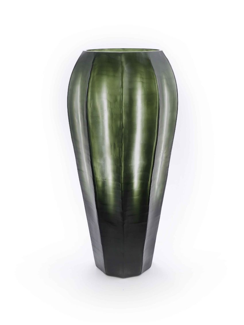 Le vase a une couleur «verte» moderne et tire son aspect luxueux de la méthode de production traditionnelle. Chaque article est soufflé à la bouche et fabriqué à la main, de sorte que les imperfections mineures font partie du produit. Vase Pyrite est disponible en 2 tailles différentes, un bol et une bougie chauffe-plat , terminez votre coiffage en une seule fois en combinant différentes tailles.