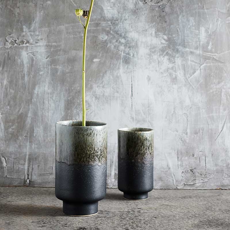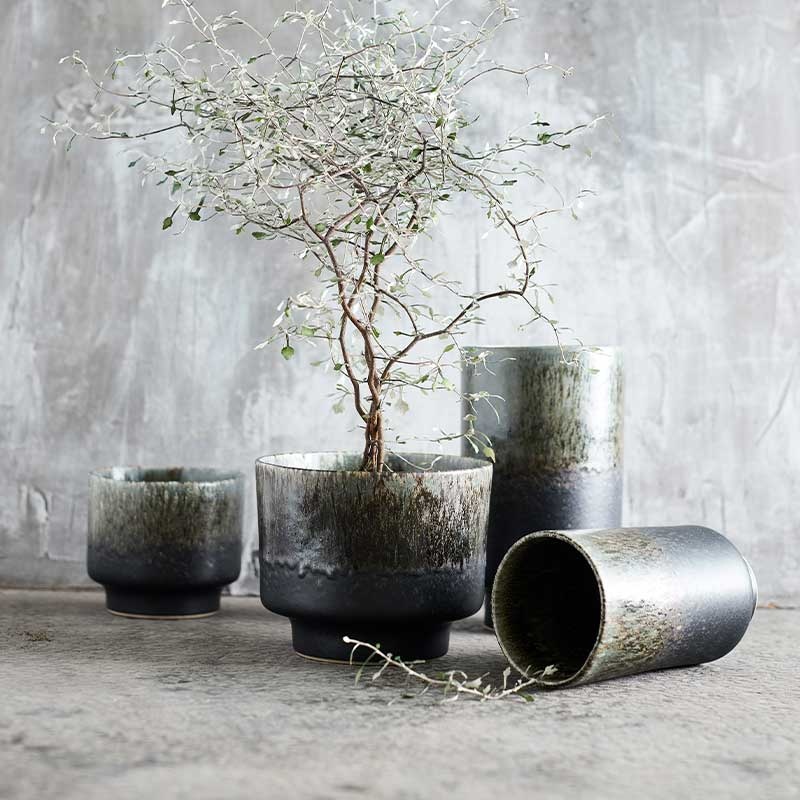 La glaçure réactive fascinante peut varier en couleur et en texture. En outre, la glaçure s'exprime en différentes nuances selon la façon dont la lumière frappe le vase. Remarque : tous les pots et vases de la série Lago sont destinés à un usage intérieur.