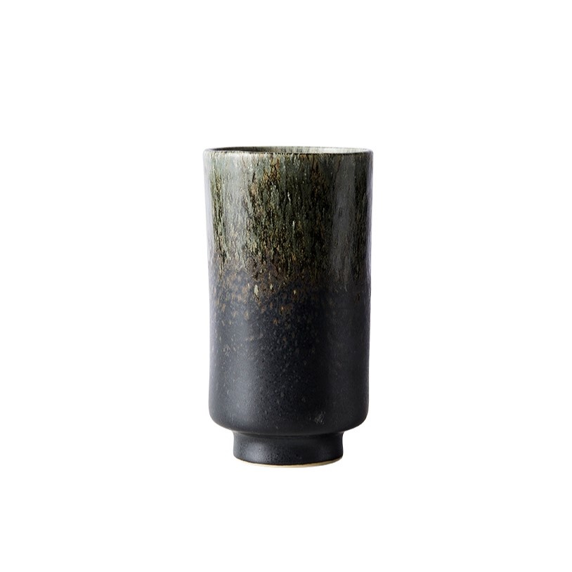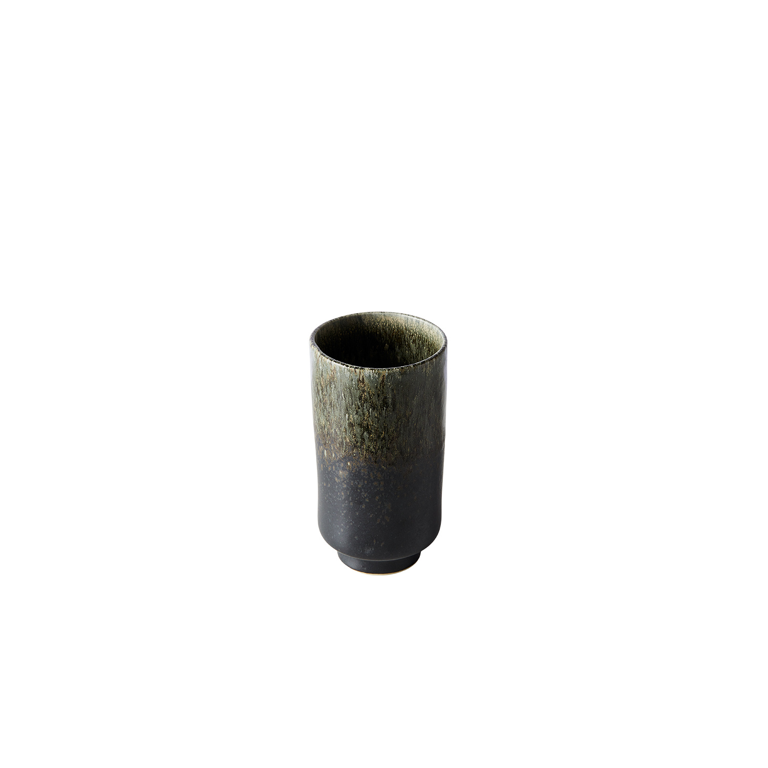 La Vase lago est en céramique et présente une glaçure aux tons verts et foncés.