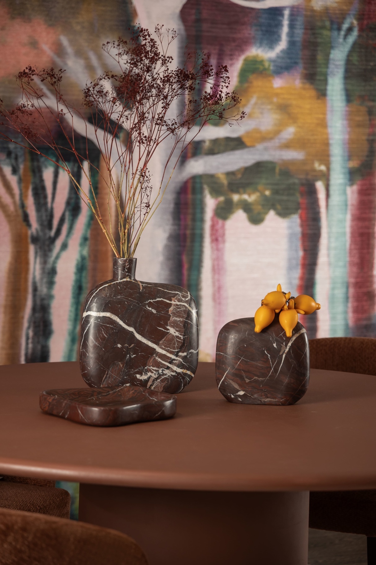 Le vase 'Mir' est une pièce décorative élégante et intemporelle, fabriquée à partir de marbre rouge de haute qualité. Ajoute une touche de luxe à votre intérieur.