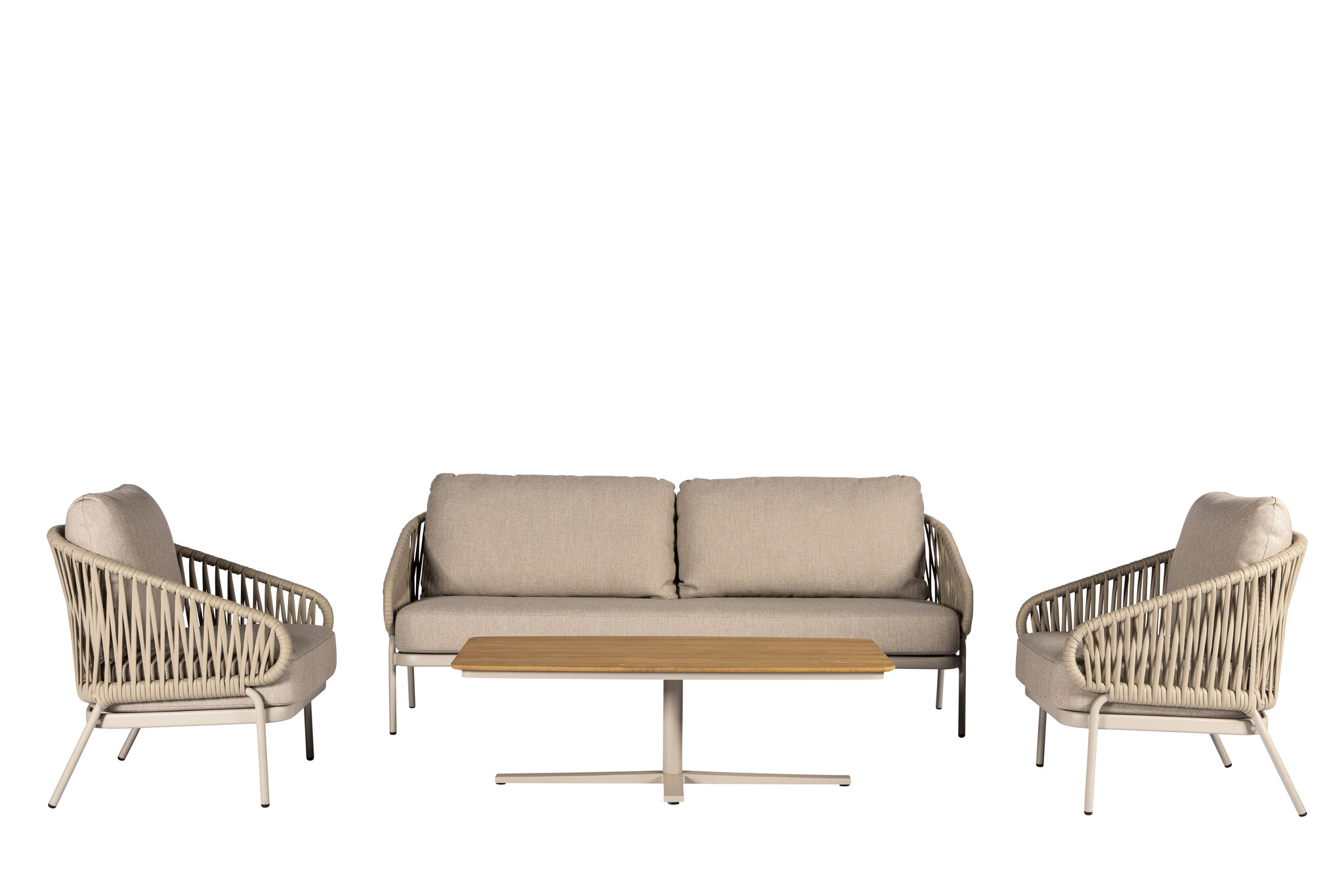 De Comillas lounge sofa drie zits in aluminium salix met een handgeweven belt in dezelfde tint en zachte flax beige kussens biedt royale ruimte en een elegante uitstraling voor iedere buitenlounge. Het lichte en roestvrije aluminium frame staat garant voor duurzaamheid en stabiliteit, terwijl de verfijnde beltstructuur een warme, ambachtelijke sfeer toevoegt aan het ontwerp. De ruime all weather kussens in flax beige zorgen voor een comfortabel, ondersteunend zitcomfort en zijn ademend, weerbestendig en eenvoudig te onderhouden. Dankzij de serene kleurcombinatie en hoogwaardige materialen vormt de Comillas lounge sofa drie zits een stijlvol middelpunt in zowel moderne als natuurlijke tuinen. Een perfecte keuze voor wie houdt van ontspannen buitenleven in rust en verfijning.