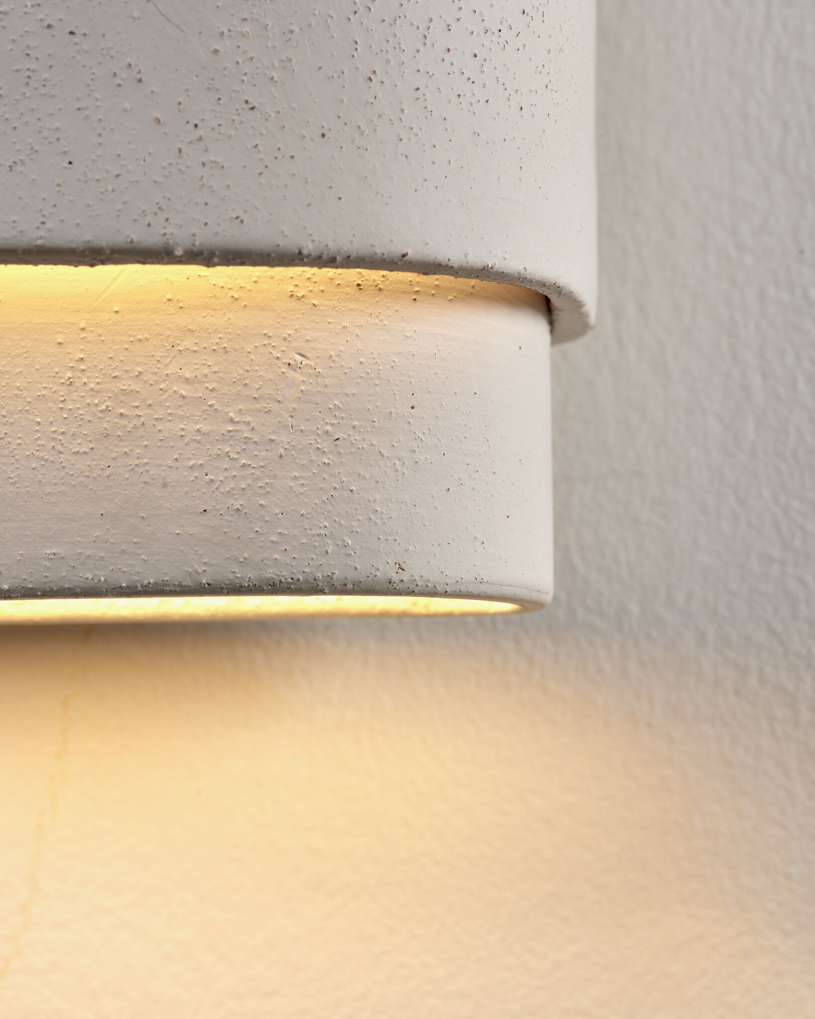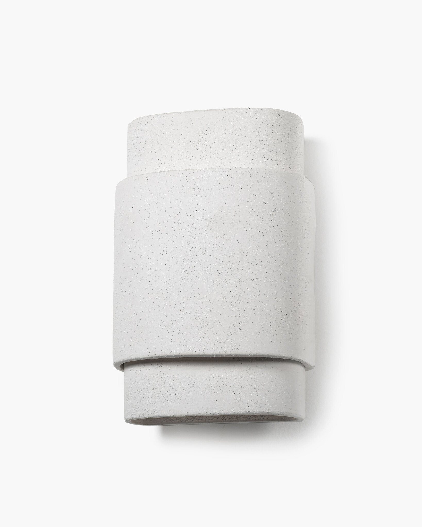 Deze unieke beige-kleurige wandlamp van steengoed is gemaakt van verschillende stroken klei. Deze wandlamp Pierre brengt een uitgesproken handgemaakt karakter naar voren en ademt design.