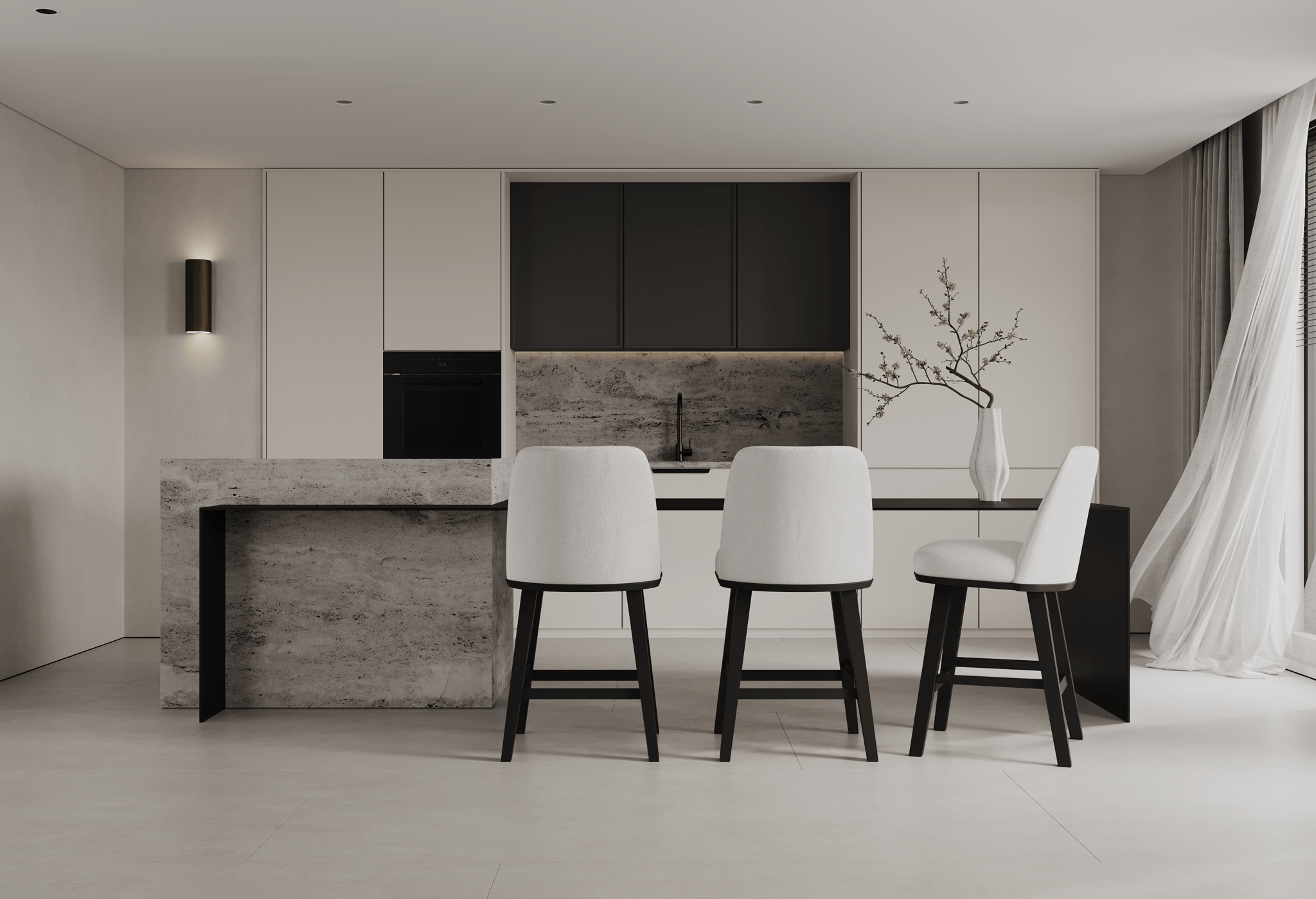 De stijlvolle barstoel 'Logan' heeft een zithoogte van 65 cm, waarmee hij perfect onder een kookeiland past. Deze chique stoel is gestoffeerd in de mooie helder witte kleur 'Soft White' wat een mooi contrast vormt met het stoere zwarte onderstel van hout.