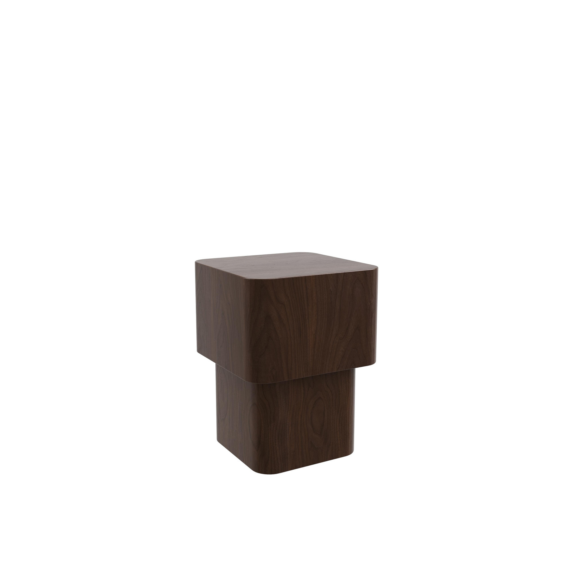 De Doha bijzettafel van het luxe merk Dôme Deco is gemaakt van een duurzame walnoot veneer.