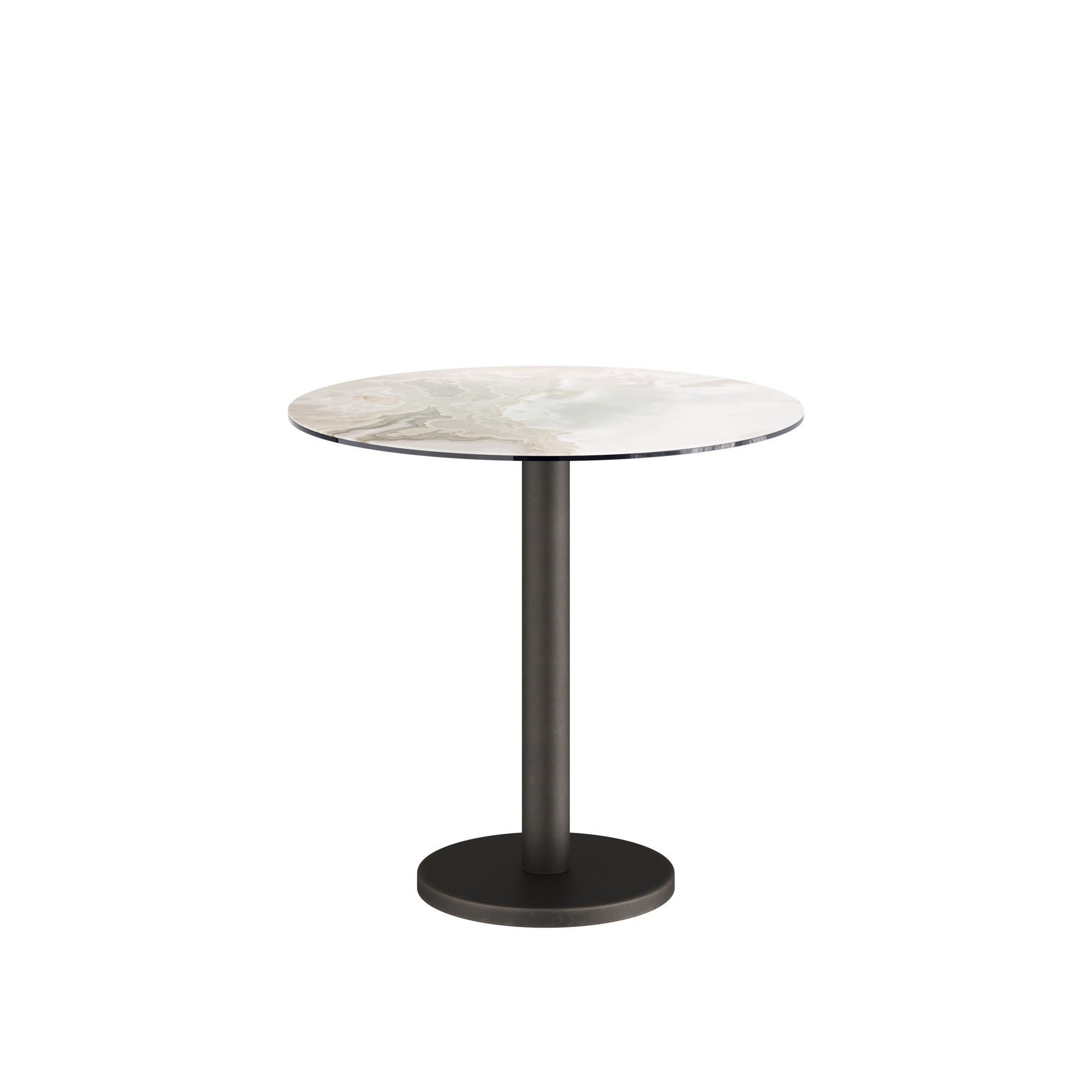 Bistro tafel 'Bari' wordt ondersteund door een metalen poot, het tafelblad is beschikbaar 4 verschillende uitvoeringen.