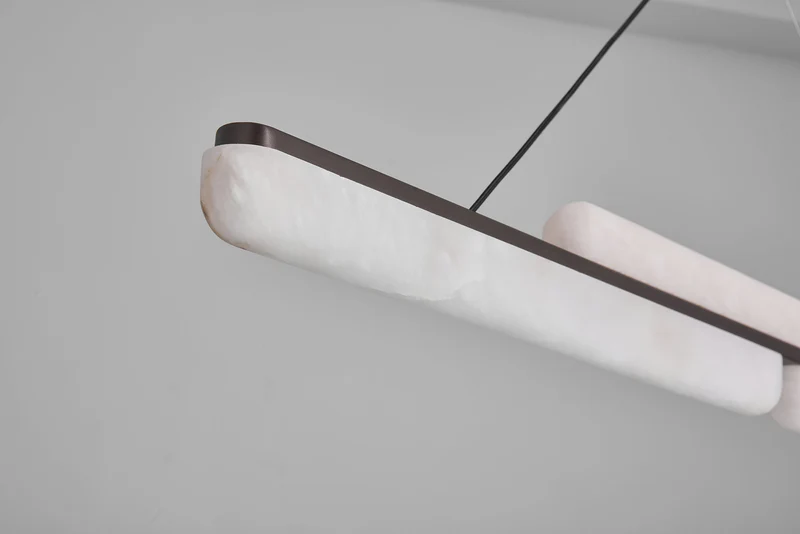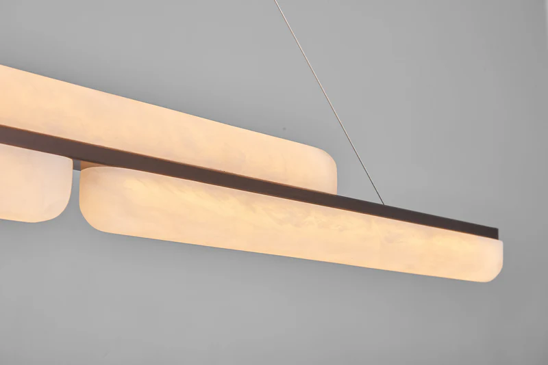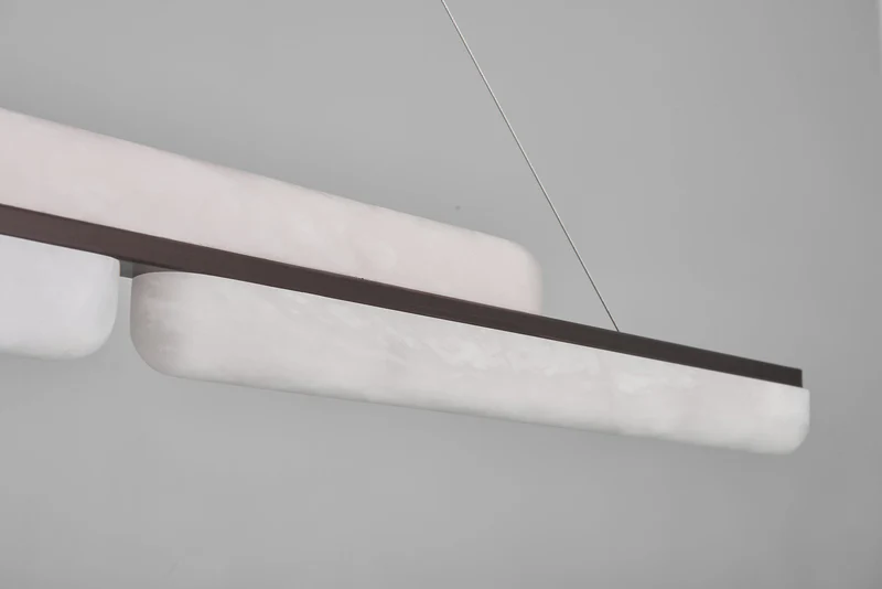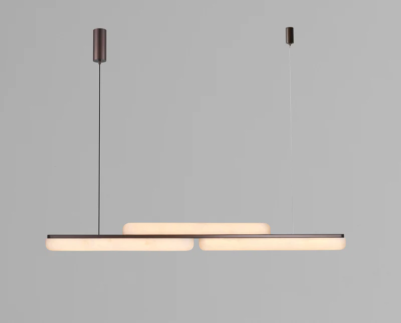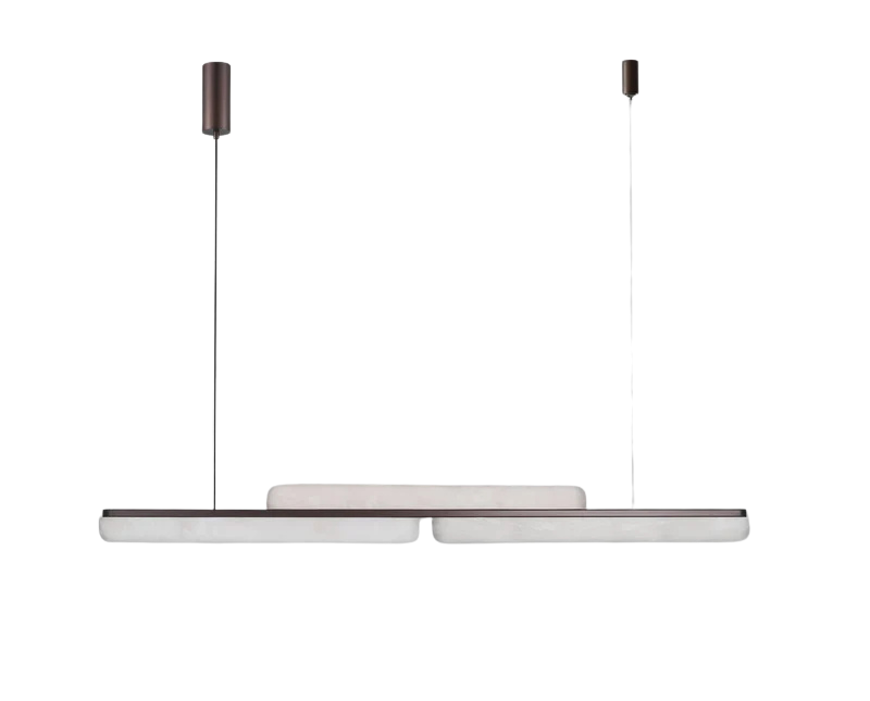 De Loro-kroonluchter is ontworpen om een gelijkmatige, sfeervolle verlichting te bieden boven smallere eet- en keukengedeeltes. De lange, horizontale vorm wordt verzacht door afgeronde randen, waardoor het ontwerp strakke lijnen heeft zonder stijf over te komen. Het licht wordt over de gehele lengte van de armatuur verspreid, waardoor de ruimte eronder rustig en uitnodigend aandoet. De armatuur is bijzonder geschikt voor kookeilanden en compactere eettafels, waar één enkele hanglamp de ruimte moet structureren.
