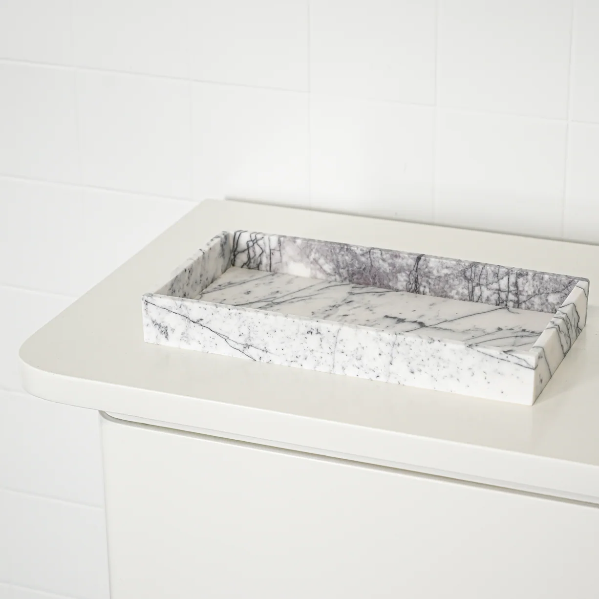 Onze White Marble Tray is een tijdloos, onmisbaar dienblad dat verfijnde luxe in elke ruimte brengt.