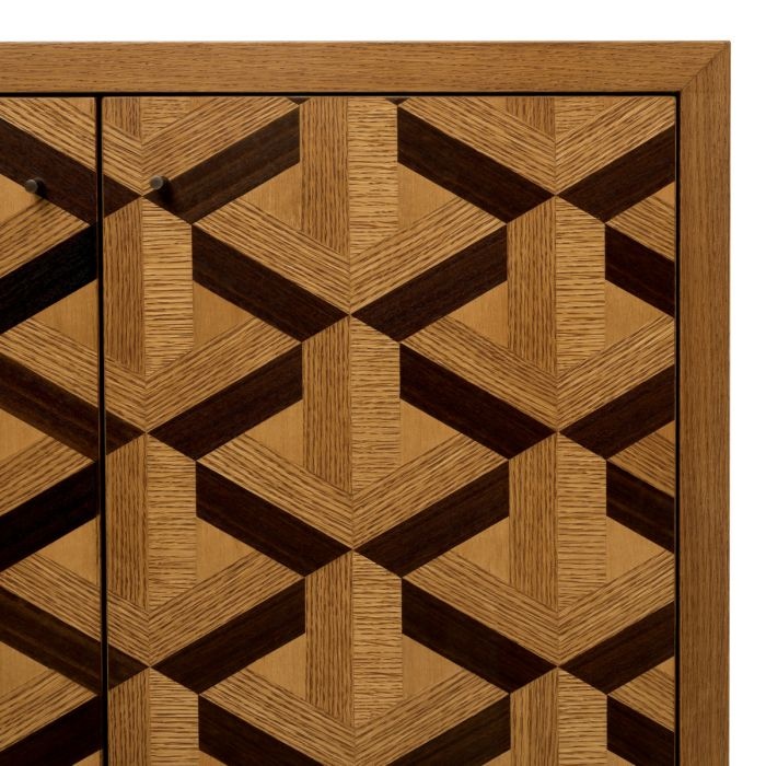 Maak kennis met de Rubicon fineerdressoir, met een opvallend nieuw inlegpatroon dat elegantie een nieuwe definitie geeft. Zorgvuldig vervaardigd via een nauwgezet proces waarbij lasergesneden fineerstrips met de hand worden geassembleerd, geperst, verlijmd en naadloos worden aangebracht, weerspiegelt dit meubelstuk echt vakmanschap. De rijke tinten en strakke afwerking combineren innovatie met tijdloze aantrekkingskracht, wat resulteert in een verfijnd statement piece dat perfect past in een stijlvolle omgeving. Dit dressoir belichaamt subtiele luxe dankzij de zorgvuldig geselecteerde materialen en het ontwerp.
