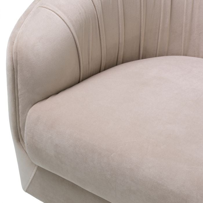 Maak kennis met de Jameson-stoel in amaro cream, waarbij delicate, lichte stof een strak silhouet omhult, ondersteund door contrasterende zwarte poten. Dit verfijnde meubelstuk straalt subtiele luxe uit door zijn zachte tint en minimalistische ontwerp, waarbij moderne elegantie en uitnodigend comfort perfect in balans zijn voor een verfijnde, hoogwaardige sfeer.
