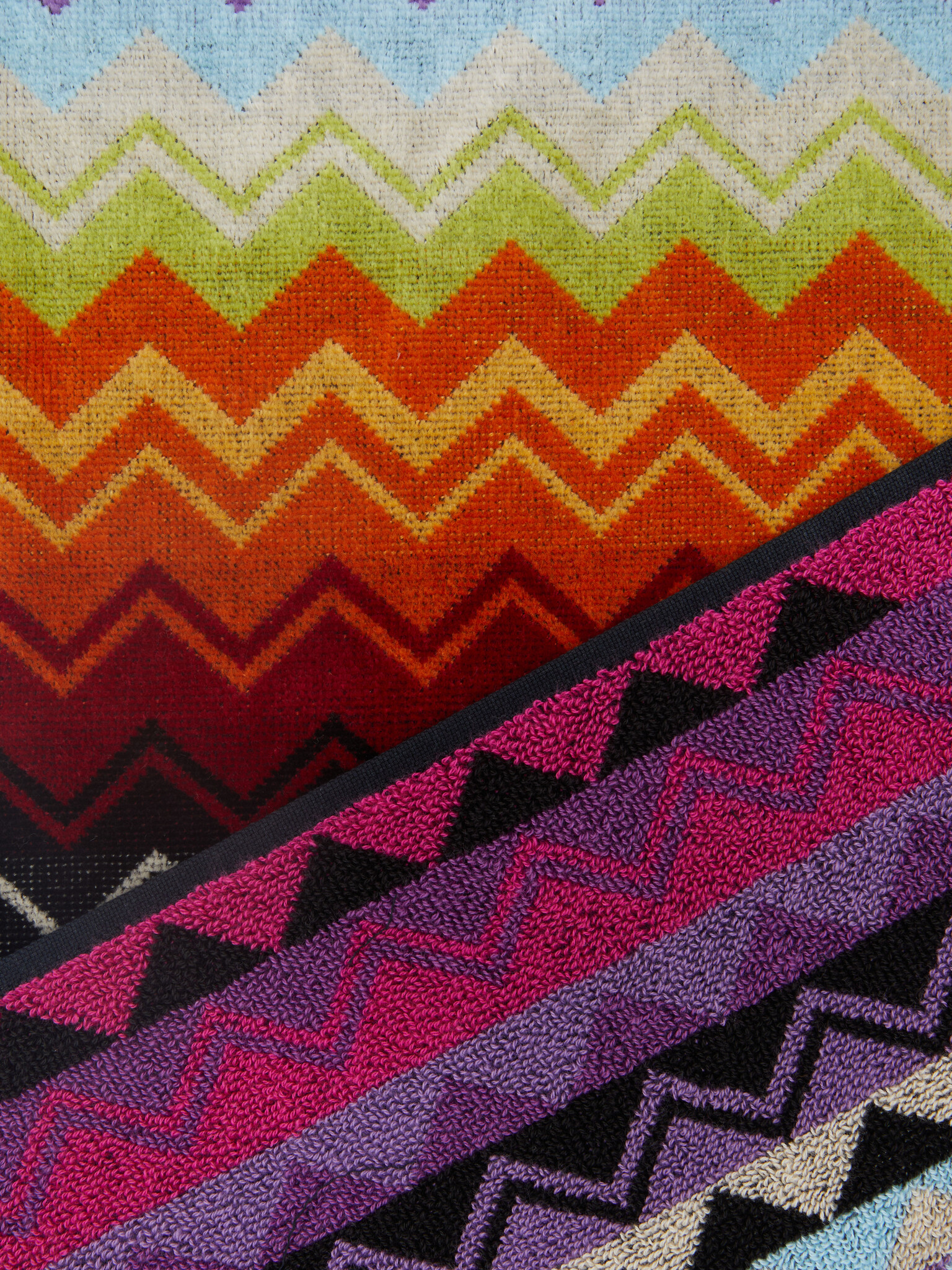 Handdoek Giacomo van het italiaanse topmerk Missoni Home heeft prachtige kleur nuances in het bekende zigzag patroon.