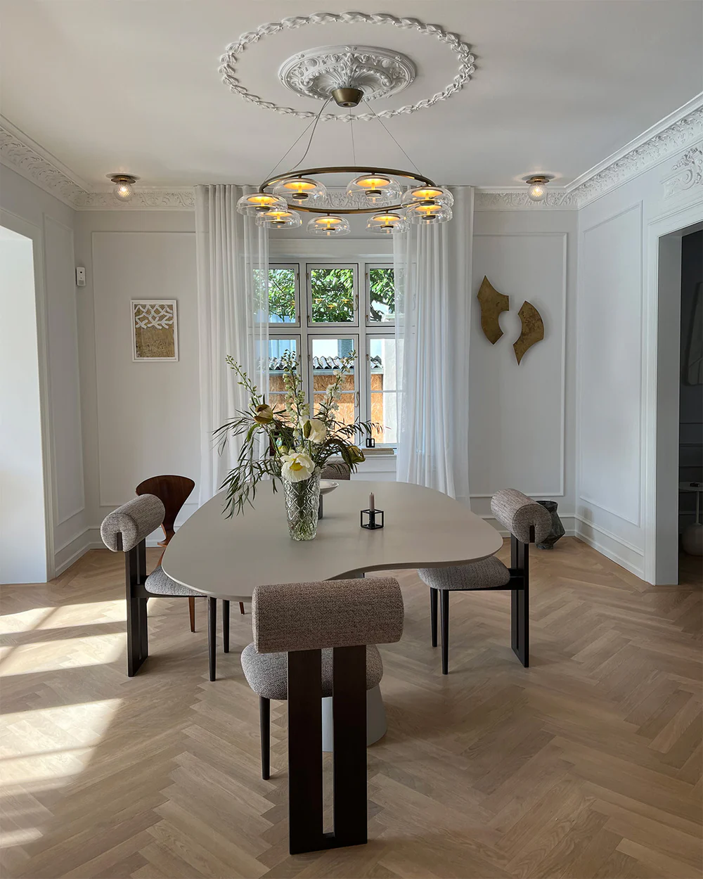 Subtiele Scandinavische elegantie – De Blossi brengt een zachte, verfijnde sfeer in huis met zijn ronde, mondgeblazen glazen kap en metalen details in Nordic gold. Dankzij de nieuwste LED-technologie straalt hij flicker-vrij licht uit dat zacht reflecteert in glas en goud, voor een warme, indirecte gloed. Perfect om solo te hangen of in een serie voor een stijlvolle, serene uitstraling boven de eettafel of in de zithoek. Inclusief plafondplaat en compatibel met de meeste dimsystemen.