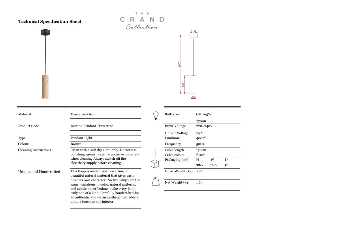 De Destino-hanglamp is ontworpen als een ingetogen verticaal accent dat gerichte verlichting en materiaaldiepte aan een ruimte toevoegt. De cilindrische vorm is bewust ingetogen en combineert een stevige buitenmantel met een slanke binnenstructuur. Het resultaat is compact van formaat maar visueel strak, en straalt een warme uitstraling uit wanneer de lamp afzonderlijk of in een reeks wordt opgehangen. Gebruik hem boven werkbladen, naast een bed of in doorgangsruimtes waar een kleine hanglamp de architectuur kan accentueren zonder deze te overheersen.