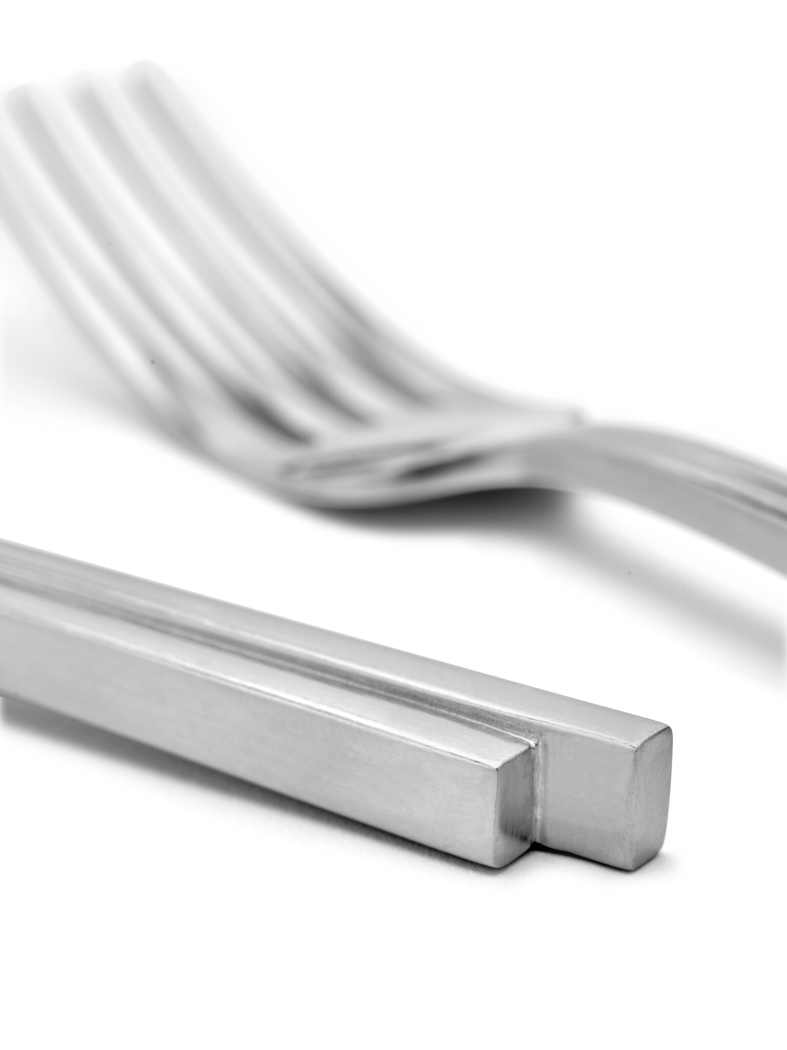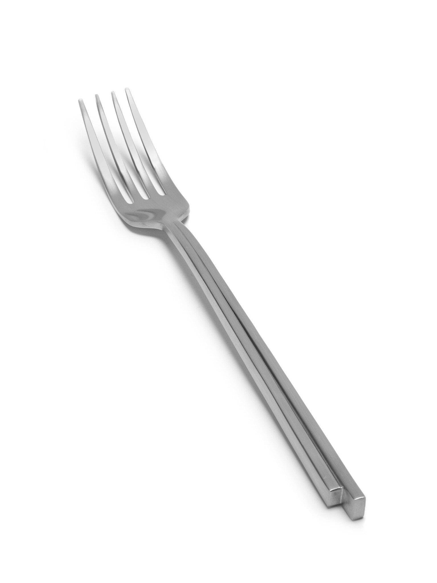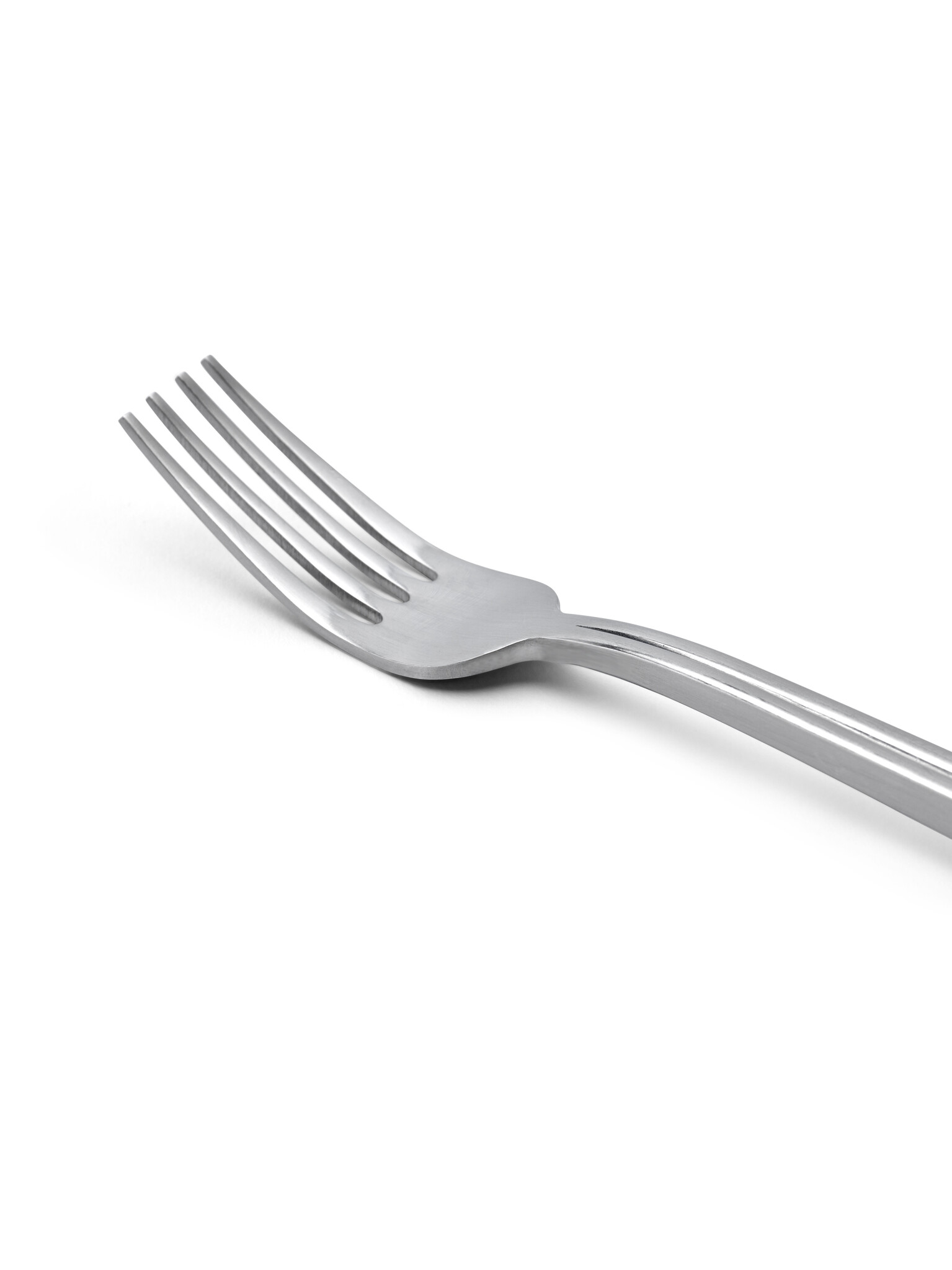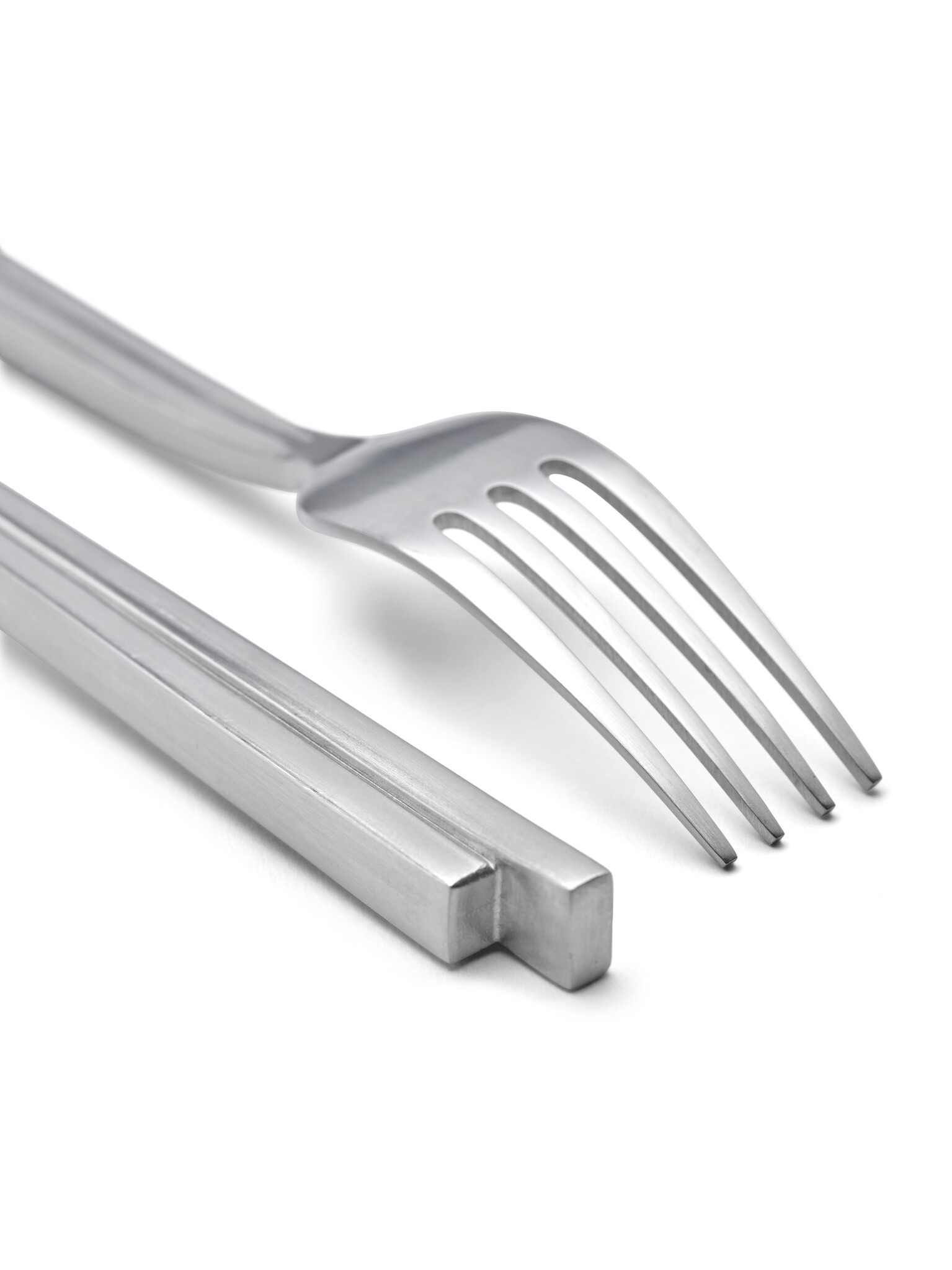 Wearstler's Dune bestek is geïnspireerd op het werk van de Oostenrijkse architect en ontwerper Josef Hoffman. De essentie zit in het expressieve offset-detail en het elegante split-effect dat over de hele lengte van het handvat loopt. Elk item is met de hand gegoten en met de hand gepolijst. Verkrijgbaar in twee afwerkingen: roestvrij staal en gezwart staal. Deze collectie is zowel geschikt voor dagelijks gebruik als voor een formeel diner. De vorken zijn per 6 verpakt in een luxe giftbox.