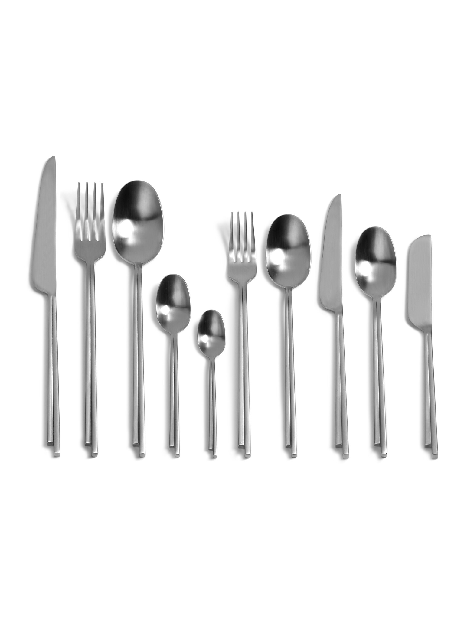 Wearstler's Dune bestek is geïnspireerd op het werk van de Oostenrijkse architect en ontwerper Josef Hoffman. De essentie zit in het expressieve offset-detail en het elegante split-effect dat over de hele lengte van het handvat loopt. Elk item is met de hand gegoten en met de hand gepolijst. Verkrijgbaar in twee afwerkingen: roestvrij staal en gezwart staal. Deze collectie is zowel geschikt voor dagelijks gebruik als voor een formeel diner. De messen zijn per 6 verpakt in een luxe giftbox.