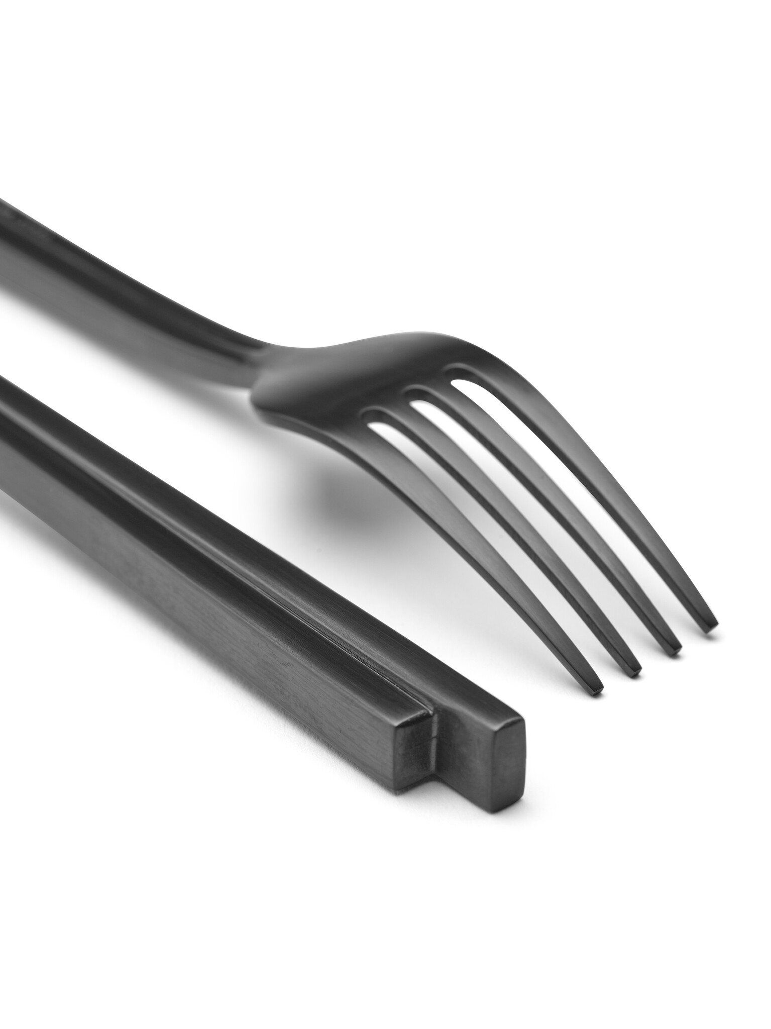 Wearstler's Dune bestek is geïnspireerd op het werk van de Oostenrijkse architect en ontwerper Josef Hoffman. De essentie zit in het expressieve offset-detail en het elegante split-effect dat over de hele lengte van het handvat loopt. Elk item is met de hand gegoten en met de hand gepolijst. Verkrijgbaar in twee afwerkingen: roestvrij staal en gezwart staal. Deze collectie is zowel geschikt voor dagelijks gebruik als voor een formeel diner. De vorken zijn per 6 verpakt in een luxe giftbox.