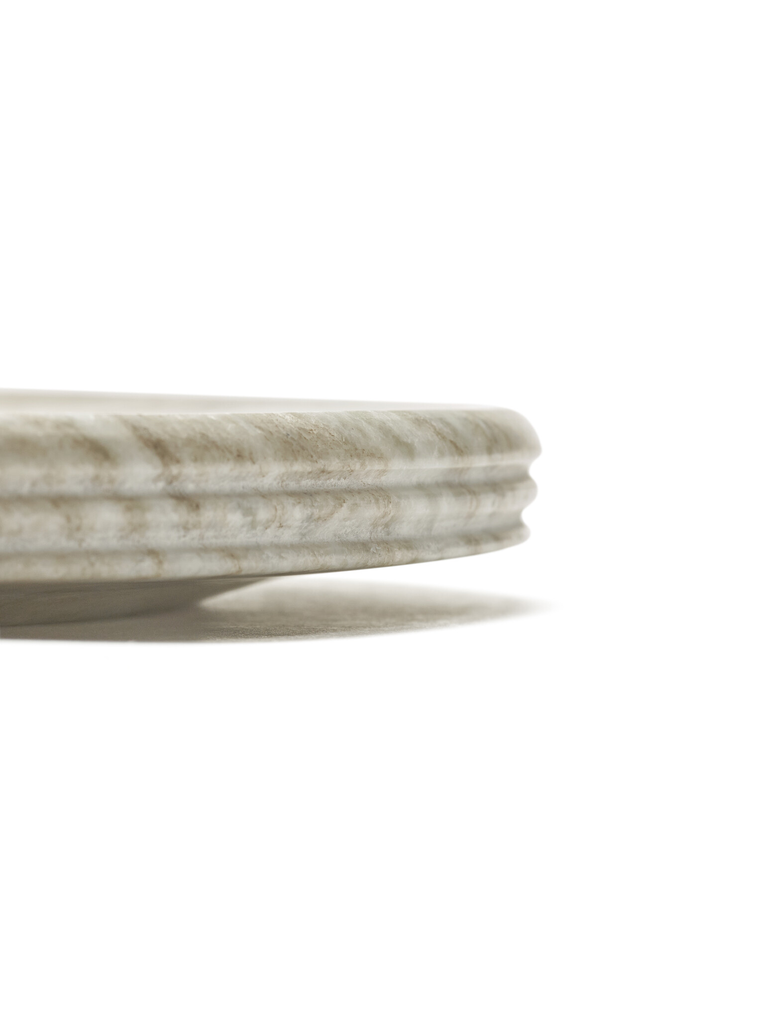 Interieurontwerpster Kelly Wearstler houdt van marmer. Ze zegt dat de marmeren accessoires in de Dune-collectie doen denken aan 'de golvende rimpelingen van stuifzand met de ingewikkelde adering en het aardse kleurenpalet'. Een collectie van 4 ambachtelijke schalen en serveerschalen die het onbetwiste middelpunt van elke tafelsetting zullen zijn. De schotel is verpakt in een luxe giftbox.