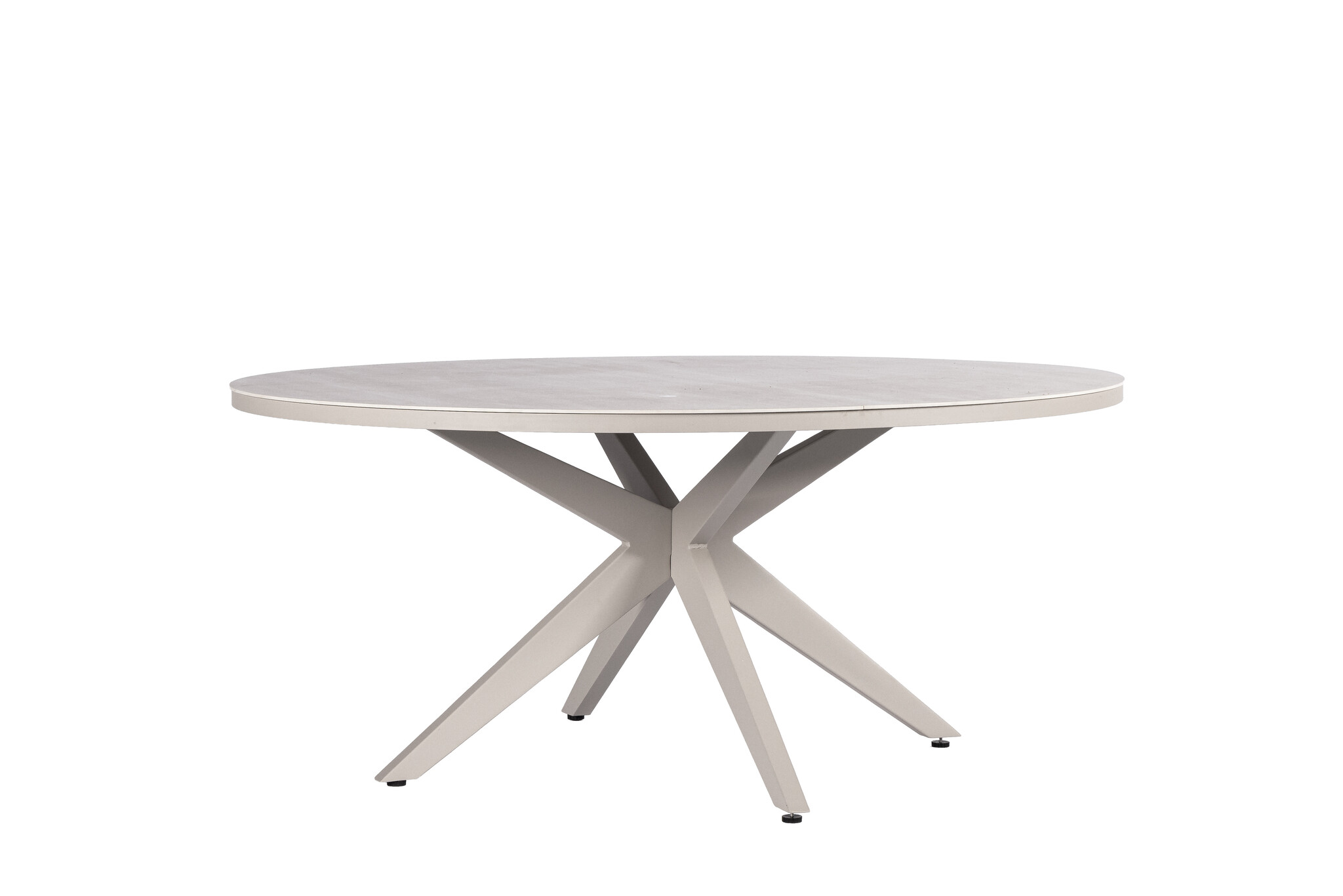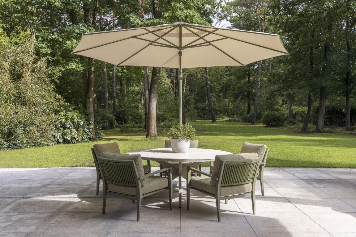 De Calma low dining tafel met een diameter van 160 cm brengt verfijnd design en natuurlijke elegantie samen. Het robuuste aluminium frame, verkrijgbaar in de kleuren Bronze en Salix, vormt een solide basis voor het royale keramieken blad met travertin look. Dit zorgt voor een warme en tijdloze uitstraling die perfect aansluit bij iedere buitenruimte. Dankzij de duurzame materialen is de tafel niet alleen stijlvol, maar ook uitstekend geschikt voor buitengebruik. De Calma biedt volop ruimte om samen te genieten van ontspannen low dining momenten in een uitnodigende en verzorgde setting.
