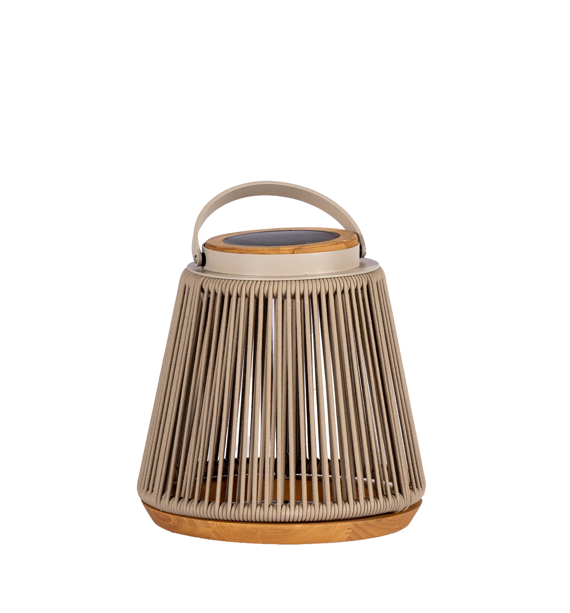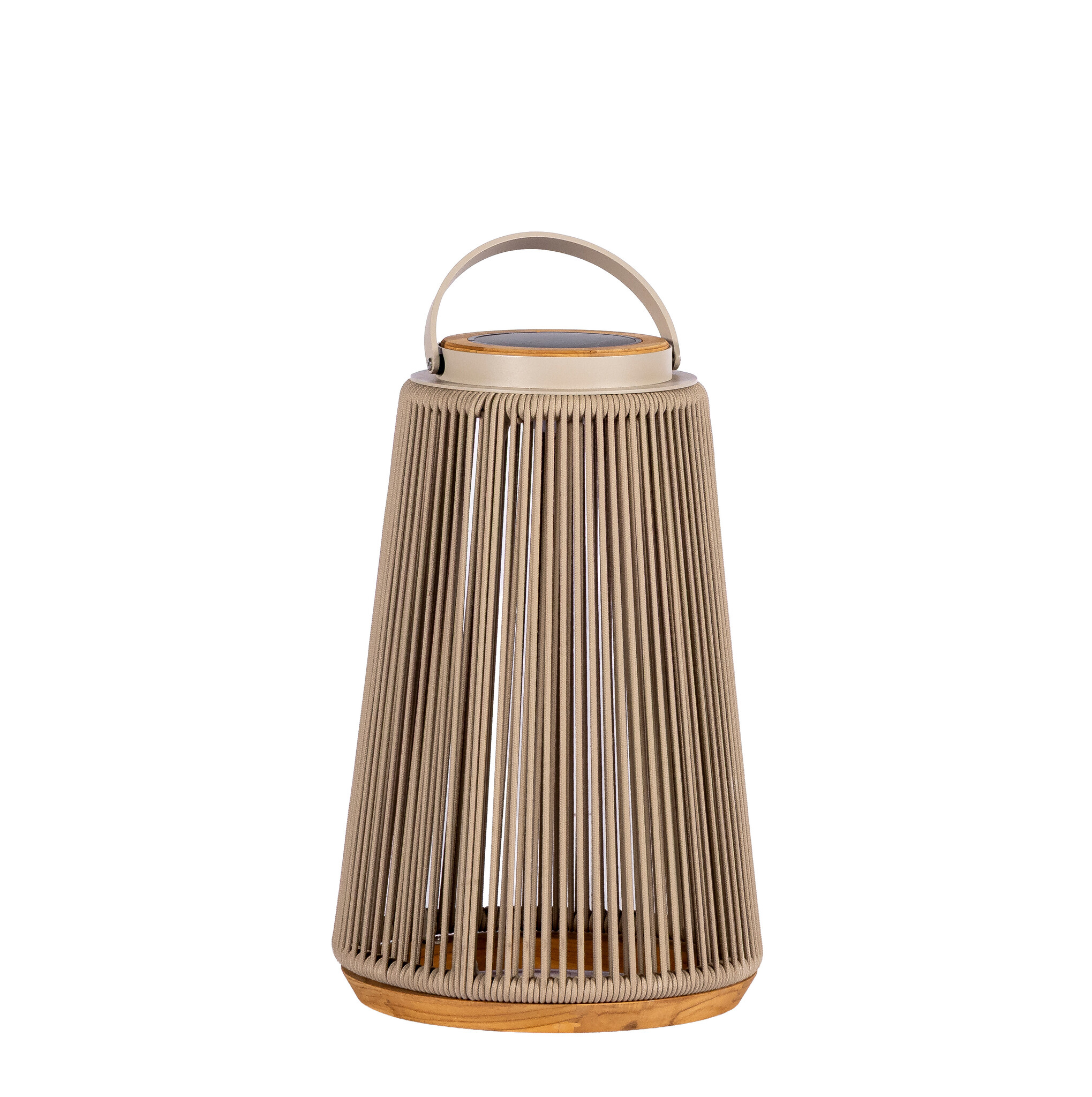 De Tinos solar lamp is verkrijgbaar in twee stijlvolle uitvoeringen: aluminium in salix met rope in salix en een teakhouten detail, of aluminium in bronze met rope in toffee en teak. Beide varianten hebben een diameter van 33,5 centimeter en een hoogte van 37 centimeter, waardoor ze compact maar opvallend genoeg zijn om elke buitenruimte sfeervol te verrijken. Het aluminium frame zorgt voor een sterke, roestvrije basis, terwijl het handgeweven rope een warme, ambachtelijke uitstraling toevoegt. Het teakhout brengt een natuurlijk accent dat perfect aansluit bij moderne én klassieke tuinstijlen. Dankzij het geïntegreerde solarsysteem werkt de lamp volledig op zonne-energie. Overdag laadt ze automatisch op en zodra het schemerig wordt, verspreidt de Tinos solar lamp een zachte, warme gloed die direct sfeer creëert. Met de combinatie van duurzame materialen, stijlvolle kleuren en energiezuinige verlichting is de Tinos solar lamp een elegante en functionele toevoeging aan elke tuin, veranda of terras.