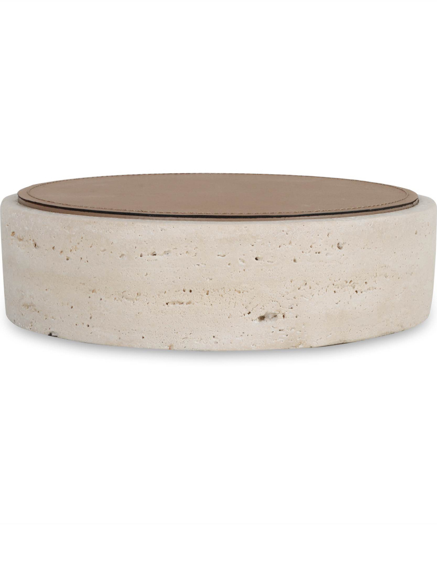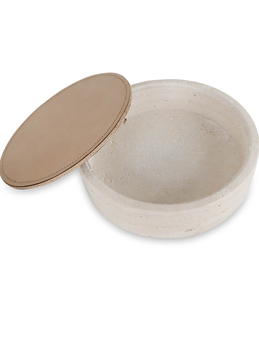 Deze elegante opbergdoos van Bombyxx is vervaardigd uit travertine, wat zorgt voor een luxe uitstraling.