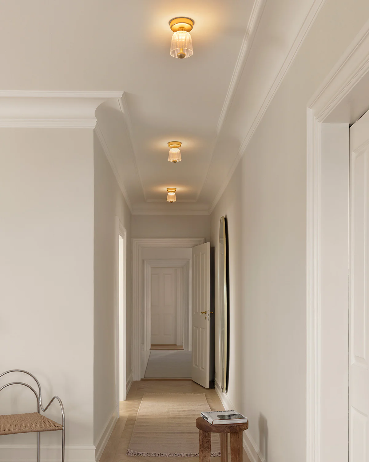 De Asteea Ceiling is een compacte plafondlamp met een elegant, organisch ontwerp geïnspireerd op de vorm van een klokbloem. De geribbelde acryl kap en het metalen armatuur geven de lamp een verfijnde uitstraling. De geïntegreerde LED zorgt voor een diffuus en indirect licht dat warmte en balans brengt in de ruimte. Dankzij het bescheiden formaat is deze plafondlamp ideaal voor keukens, gangen en ruimtes met een laag plafond.