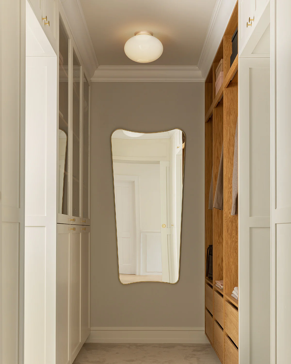 De Rizzatto 301 is een elegante plafondlamp met een organische vormgeving en een verfijnde uitstraling. Als onderdeel van de Rizzatto collectie sluit het ontwerp naadloos aan bij de andere modellen en voegt het een klassiek, decoratief element toe aan de ruimte. De elliptische kap zorgt voor een comfortabel, niet-verblindend licht dat bijzonder geschikt is voor kleinere kamers of een walk-in wardrobe. Dankzij het compacte formaat neemt de lamp weinig ruimte in, terwijl ze toch voldoende verlichting biedt en een stijlvolle sfeer creëert.