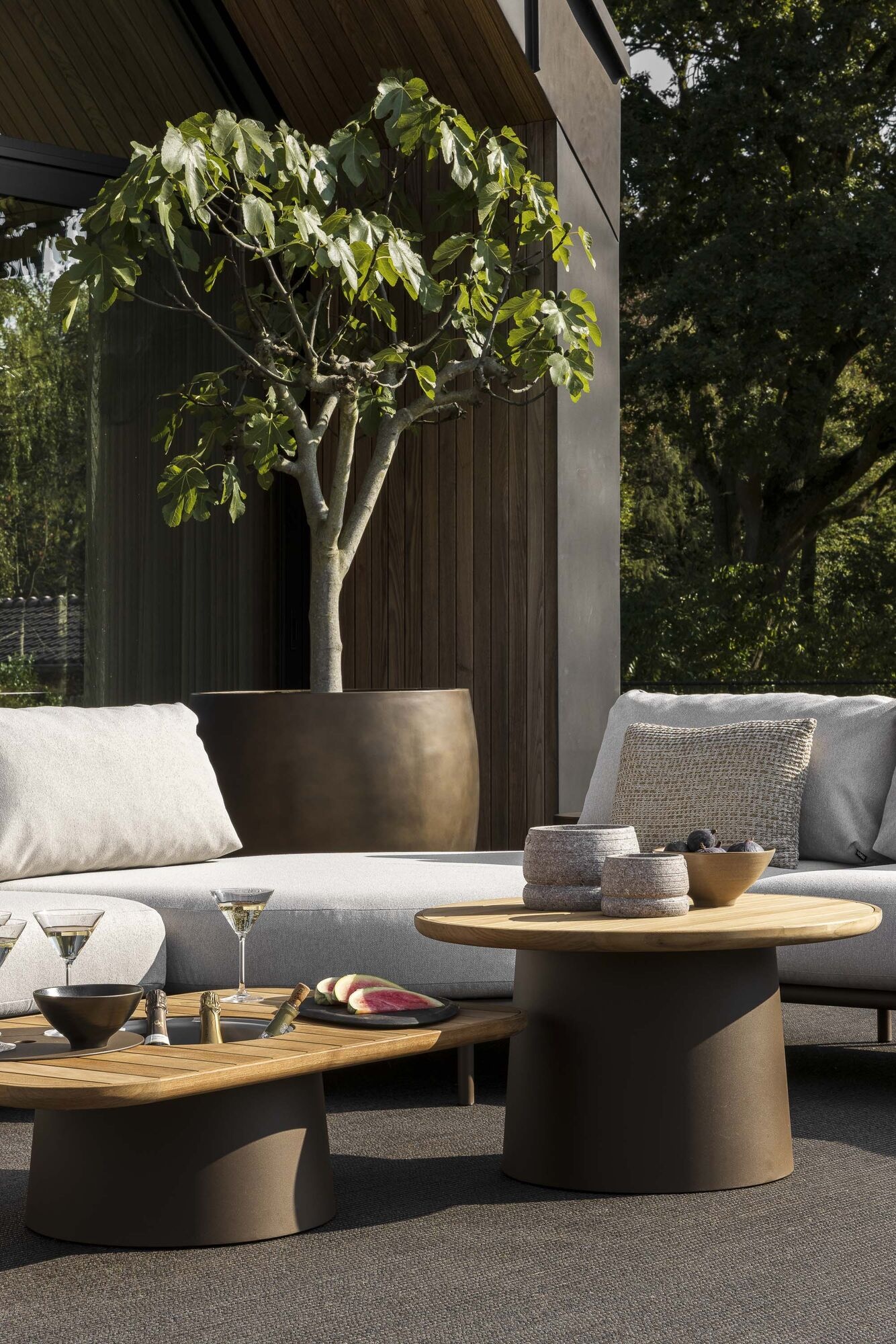 De Loreto lage tafel vormt een subtiel maar verfijnd accent binnen de Loreto-collectie van Studio Borek. Dankzij het sculpturale ontwerp met een afgeronde bronzen poot straalt de tafel rust en elegantie uit. Het teakhouten blad, opgebouwd uit zorgvuldig geplaatste latten en omlijst met een verfijnde teakrand, geeft de tafel een warme en hoogwaardige uitstraling. De lage hoogte maakt dit model ideaal als aanvullend lounge-element, perfect voor ontspannen momenten, koffiepauzes of als stijlvolle onderzetter voor decoratieve objecten. De harmonieuze proporties en rijke materiaalcombinatie zorgen dat de tafel moeiteloos aansluit bij zowel de Loreto loungeopstellingen als andere Borek-meubelen. Een tijdloos, functioneel stuk dat elke buitenruimte verrijkt met rust en verfijning.