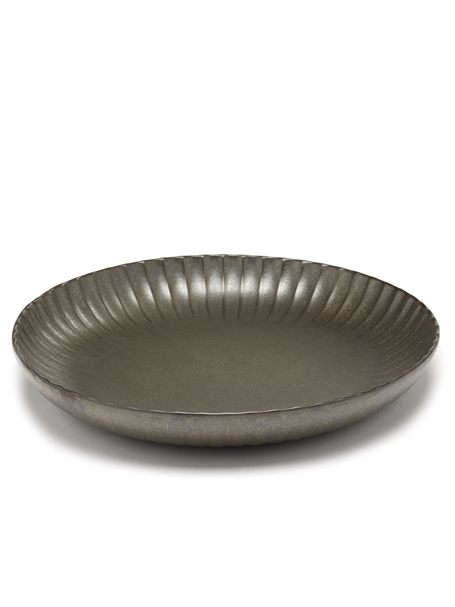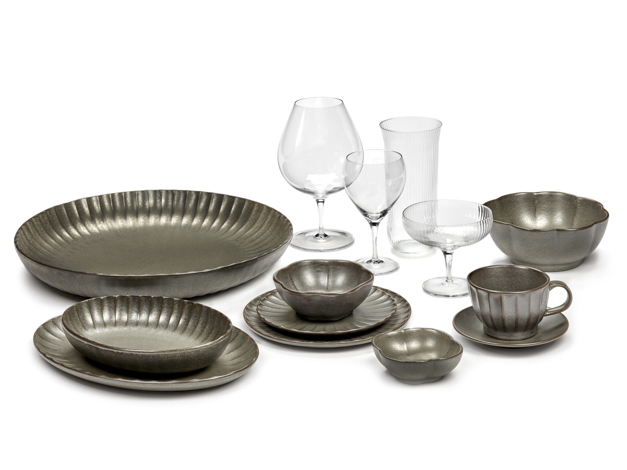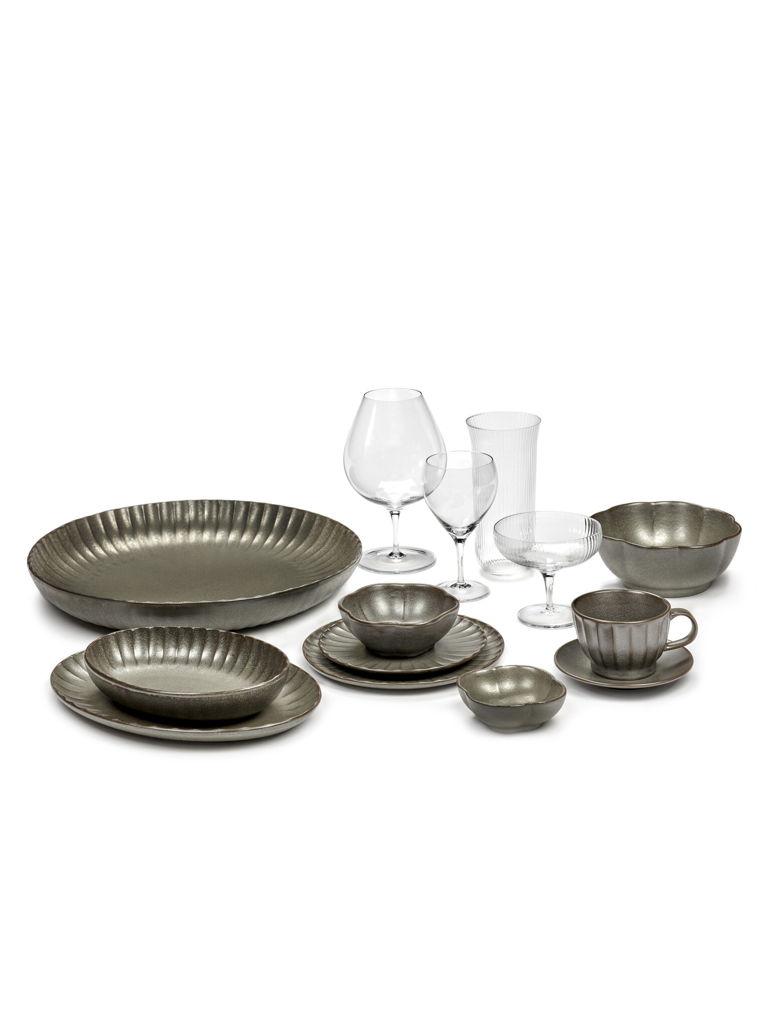 Deze groene ovale stenen serveerschaal maakt deel uit van de Inku serviescollectie van Sergio Herman. Het ontwerp is geïnspireerd op Japanse bloesems en heeft een unieke uitstraling. De serveerschaal is verpakt in een luxe giftbox.