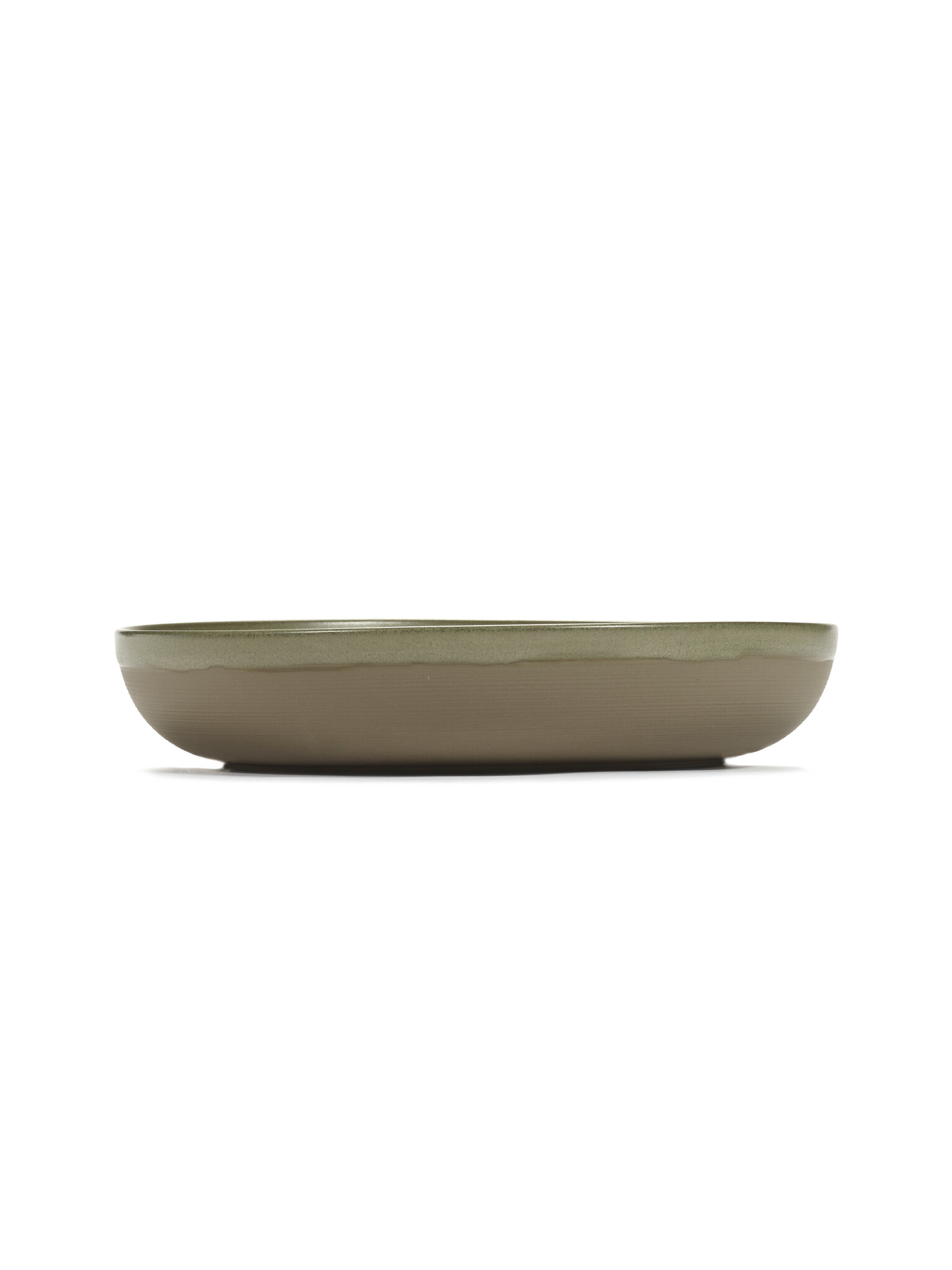 Surface by Sergio Herman for Serax is een verbluffende serie uit aardewerk met 3 verschillende uitstralingen: Camogreen, Rustybrown en Indigrey. "Ik ben van mening dat verschillende vormen en formaten allemaal hun eigen functie hebben. Dus, om de creativiteit ten volste te stimuleren, hebben we de serie zo uitgebreid mogelijk gemaakt, met kopjes, schoteltjes, borden en schalen in allerlei formaten, van laag tot hoog en van klein tot extra groot. Een mooi geserveerde maaltijd smaakt altijd beter!” Het bord is verpakt in een luxe giftbox.