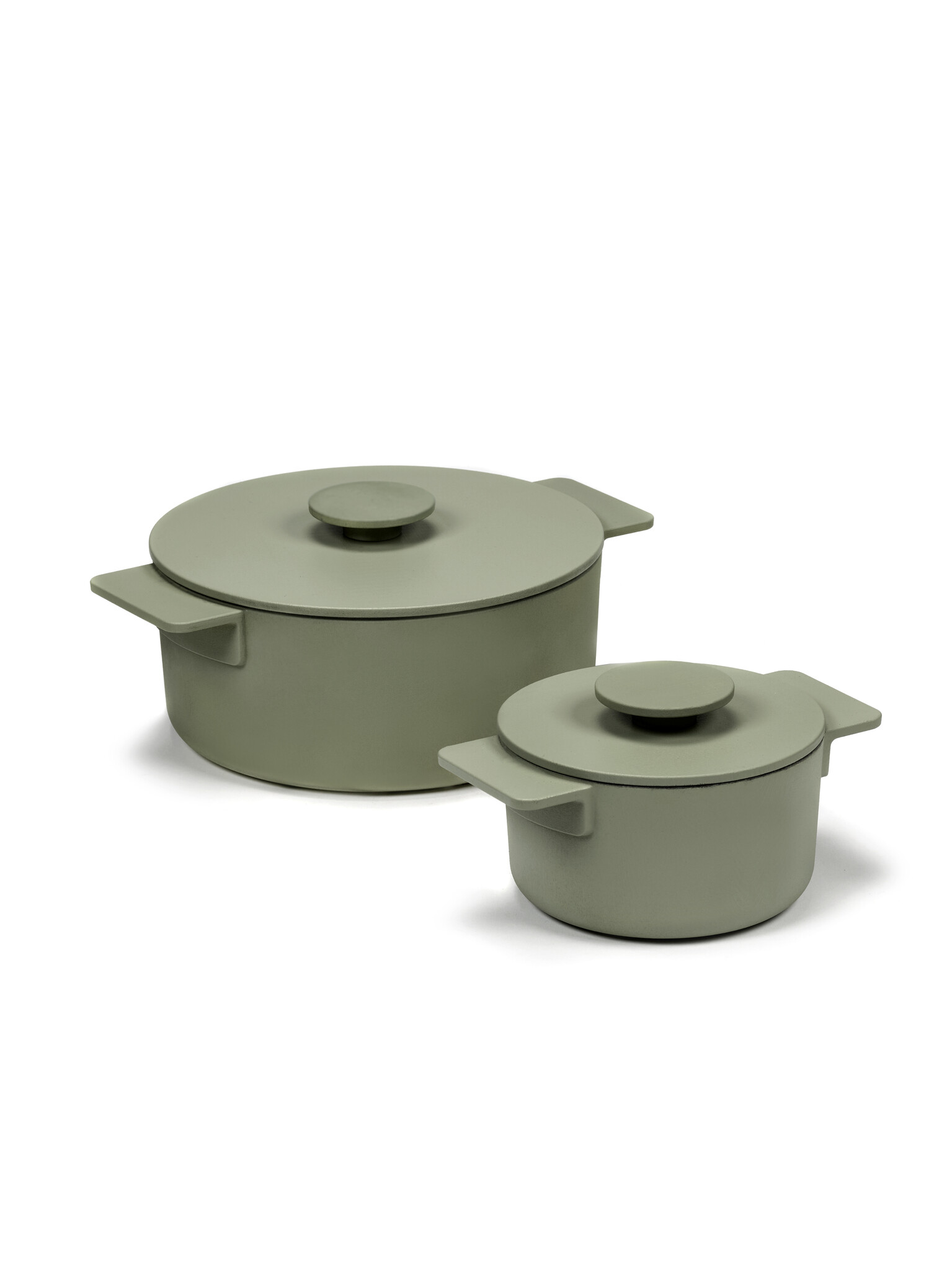 Gietijzeren potten met een onverzettelijke glazuurlaag die bestand zijn tegen de hoogste temperaturen en de warmte lang vasthouden, zodat de smaken volledig kunnen worden opgenomen en geschikt zijn voor alle warmtebronnen, van gasfornuis tot keramische kookplaten. Met deksels die niet alleen een strak, eigentijds design hebben, maar ook een ingenieus en uniek systeem om een stoof- of suddergerecht te bevochtigen met condens, zodat het gerecht kan inkoken zonder uit te drogen. De pan is verpakt in een luxe giftbox.