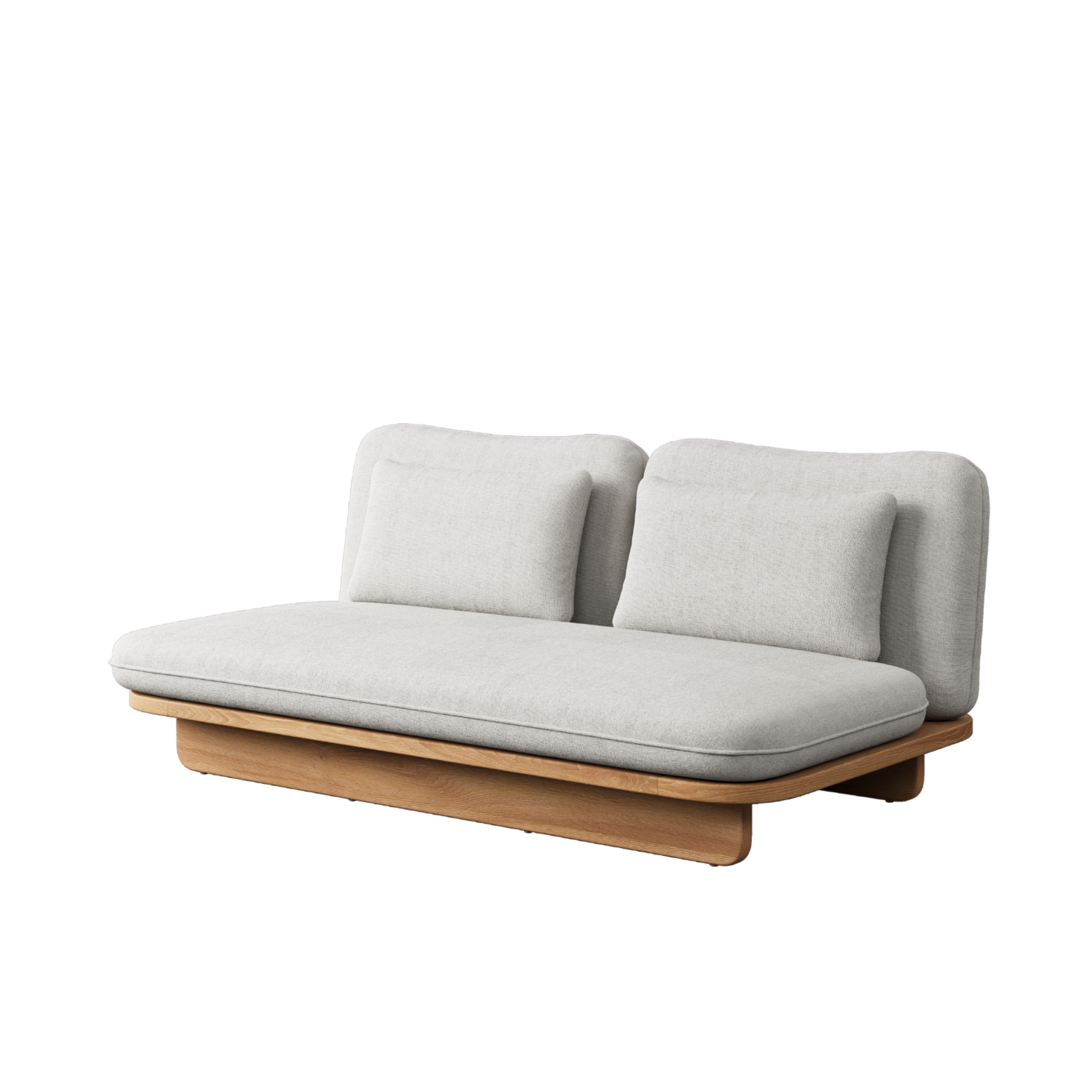 Gemaakt van solide teak voelt Rimini bijna sculpturaal aan en straalt natuurlijke warmte uit, terwijl de zandkleurige kussens het serene, minimalistische karakter versterken.