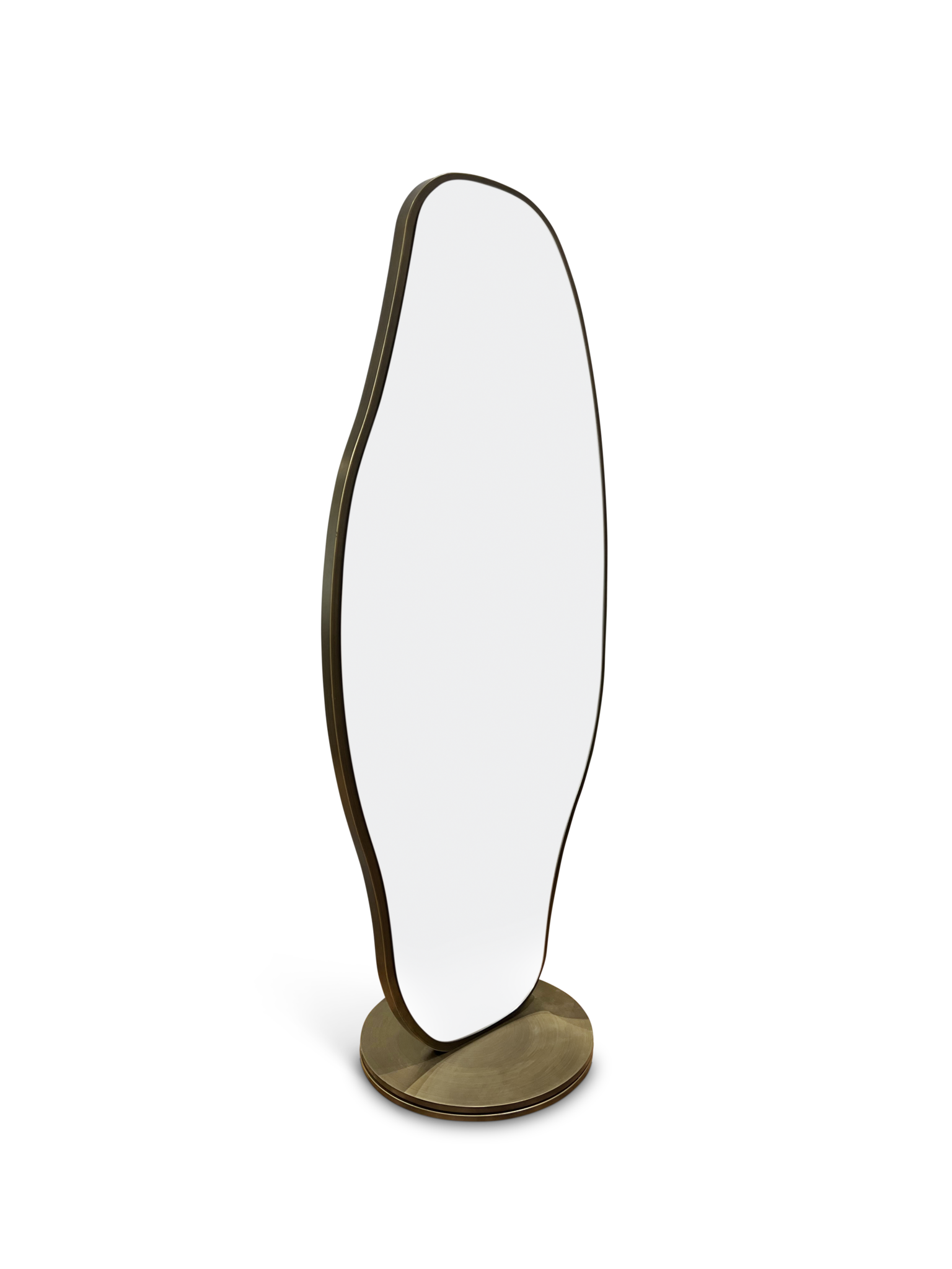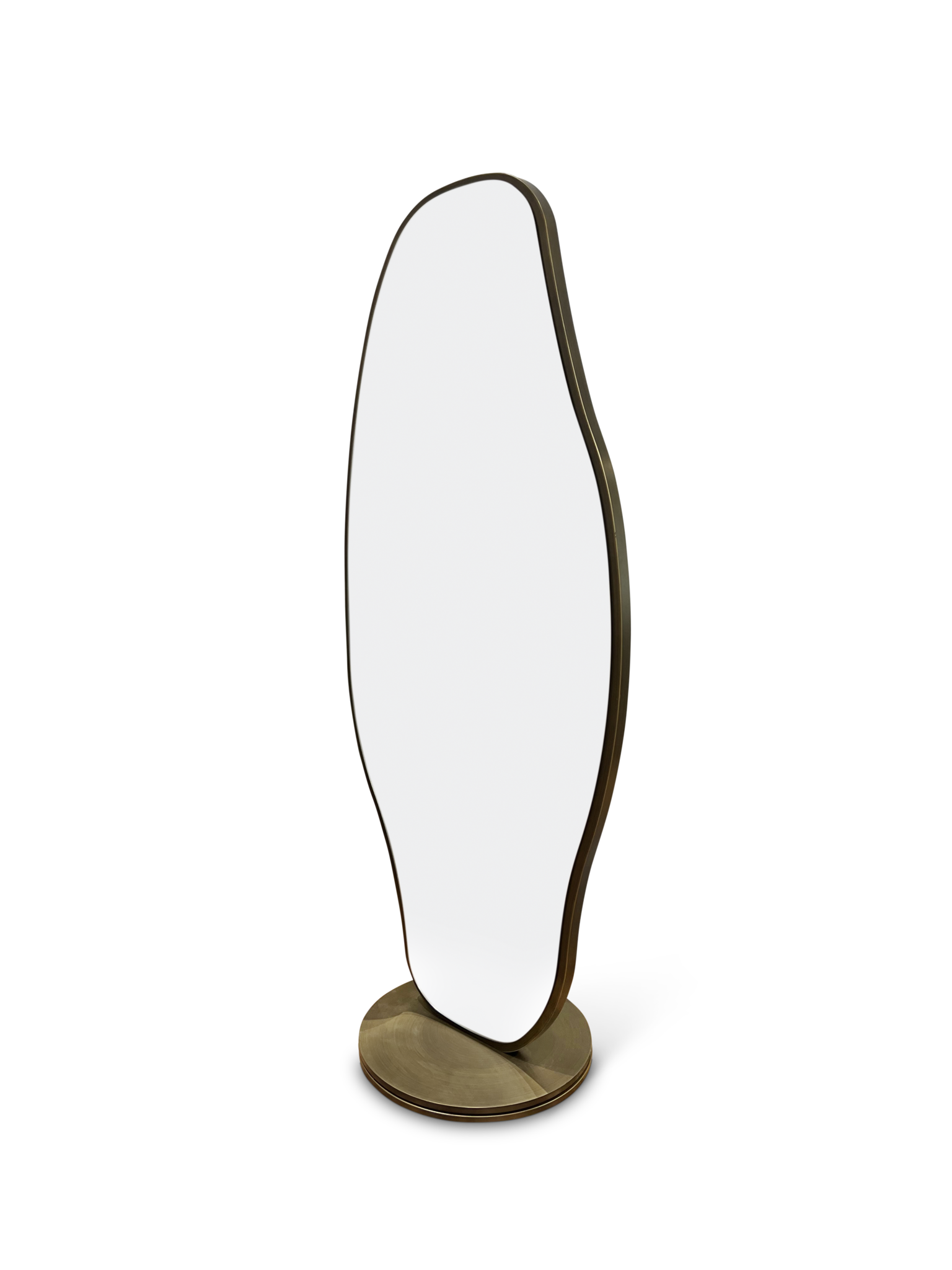 De ROCK Mirror is gemaakt met een organische vorm en combineert de retro-vibes van de jaren vijftig en zestig met hedendaags minimalisme. De spiegel heeft aan beide zijden spiegelglas en staat op een draaiplateau. Perfect om te gebruiken als paspiegel in een kleedkamer of slaapkamer. De spiegel heeft een frame van stainless steel met een bronzen finish.