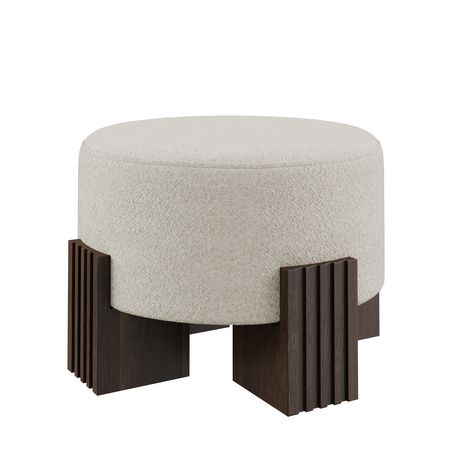 De Clark Stool combineert comfort en verfijning in een opvallend ontwerp. Deze stijlvolle kruk is bekleed met de luxueuze Philo stof (100% polyester). De ronde zitting rust op een uniek onderstel van beukenhout, afgewerkt in een diep donker walnootkleurige beits. Met zijn compacte formaat (44 cm hoog, 60 cm diameter) is de Clark Stool perfect als extra zitplek, decoratief accent of elegante bijzettafel.