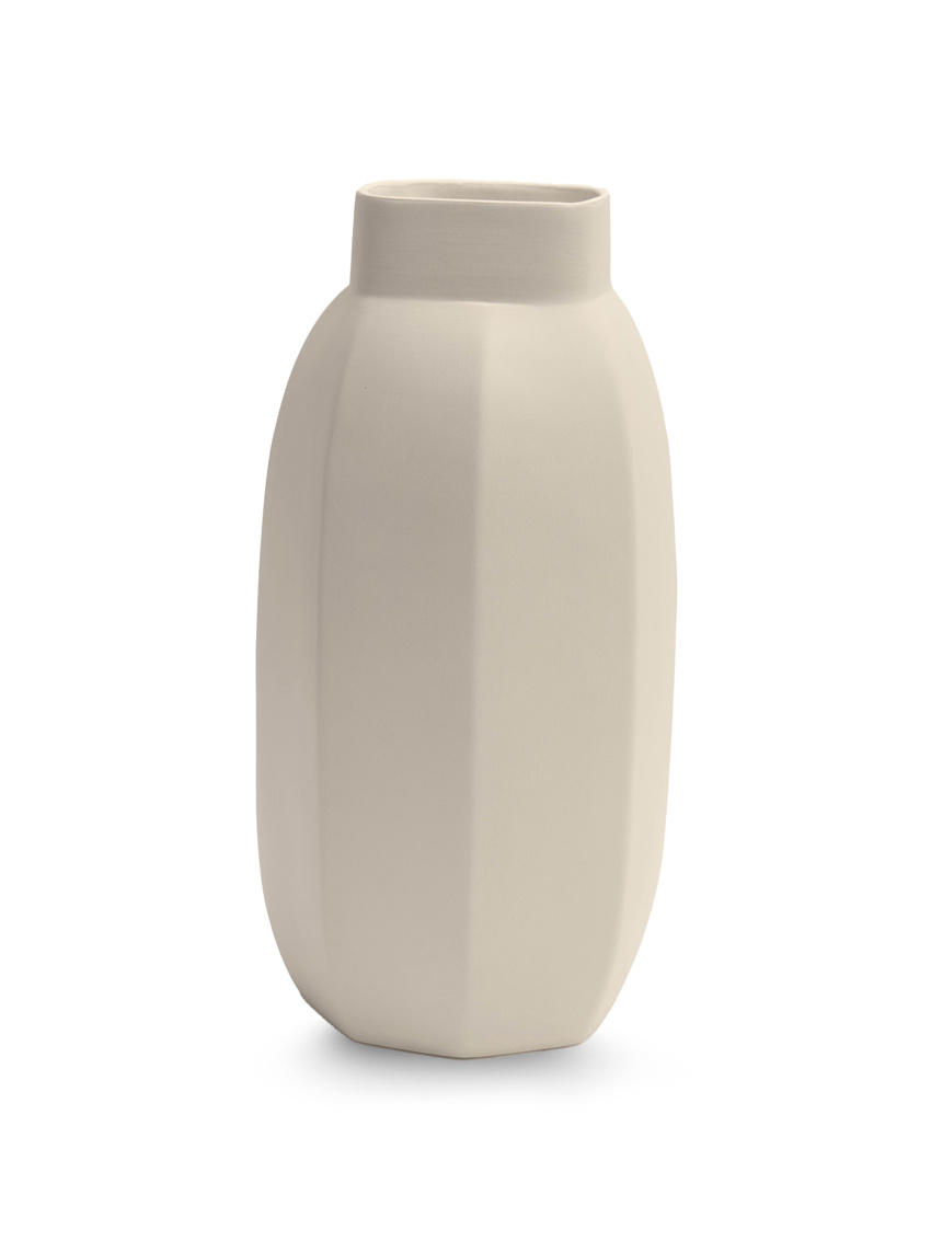 De vaas heeft een moderne 'Sand' kleur en ontleent de luxe look aan de ambachtelijke wijze van produceren. Ieder exemplaar is met de hand bewerkt, hierdoor zijn kleine imperfecties onderdeel van het product. Vaas Elysian is verkrijgbaar in 2 verschillende maten, maak je styling in één keer af door verschillende maten te combineren.