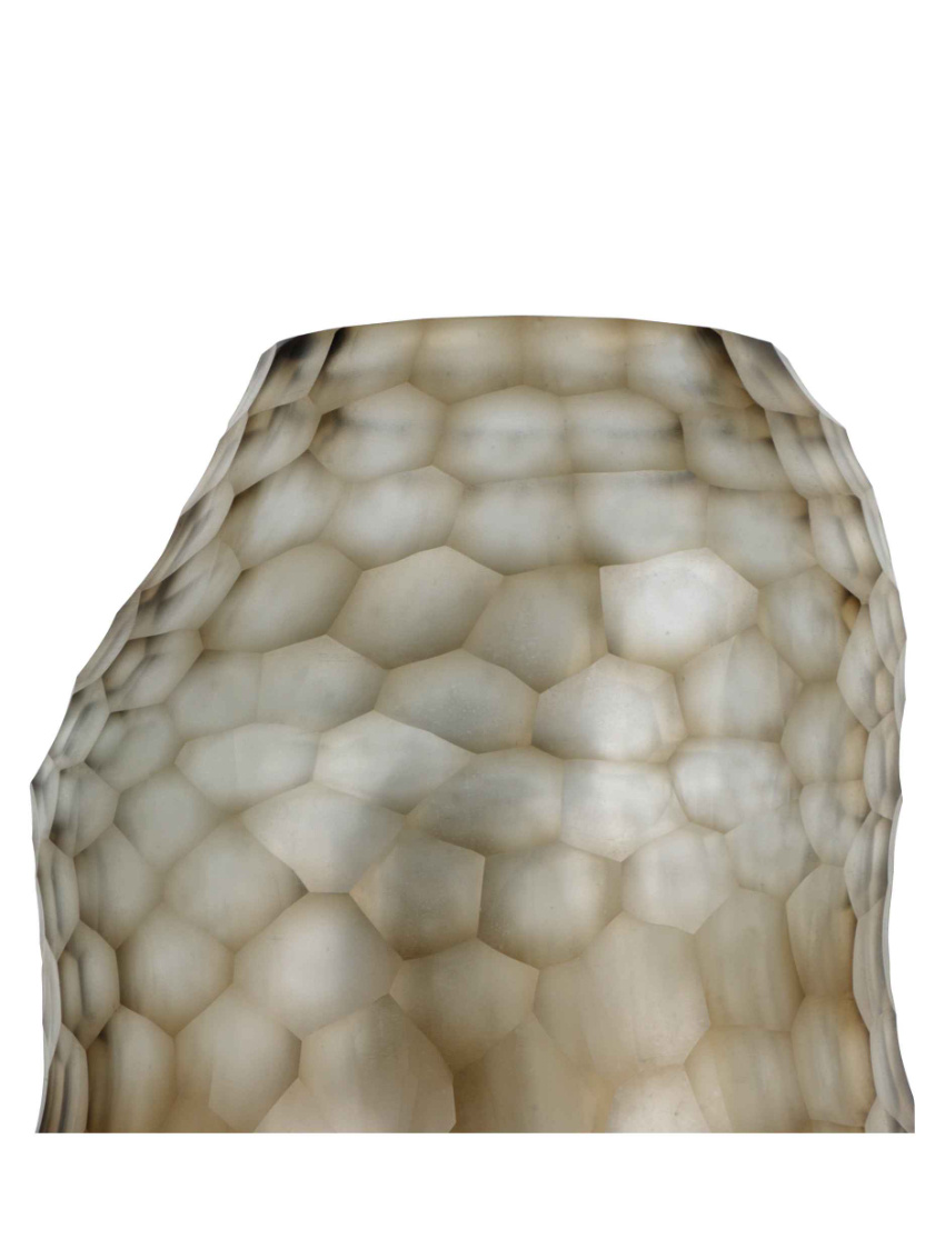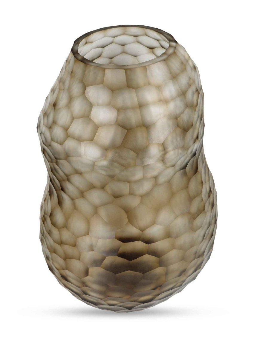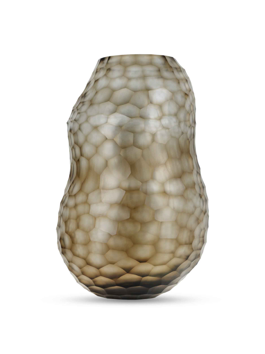 De vaas heeft een moderne 'Smoke' kleur en ontleent de luxe look aan de ambachtelijke wijze van produceren. Ieder exemplaar is mondgeblazen en met de hand bewerkt, hierdoor zijn kleine imperfecties onderdeel van het product.