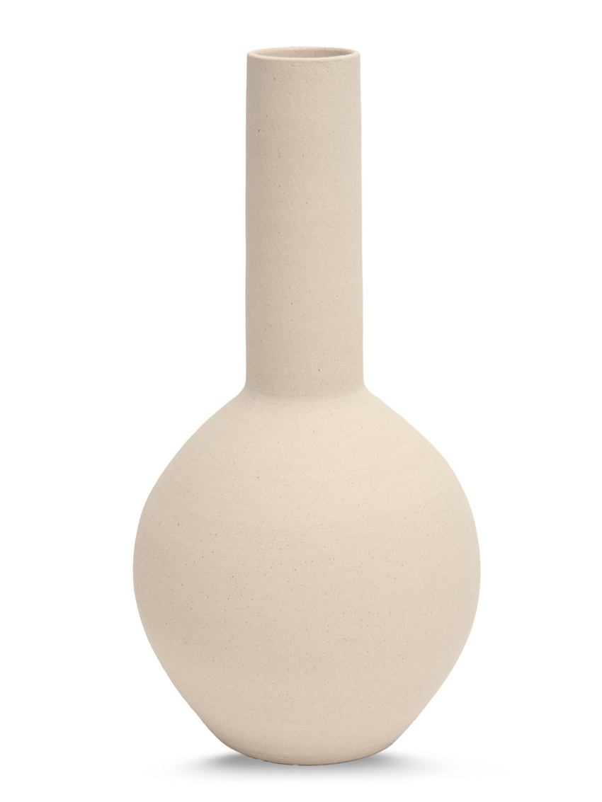 De vaas heeft een Sand kleur en ontleent de luxe look aan de ambachtelijke wijze van produceren. Ieder exemplaar is met de hand bewerkt, hierdoor zijn kleine imperfecties onderdeel van het product.