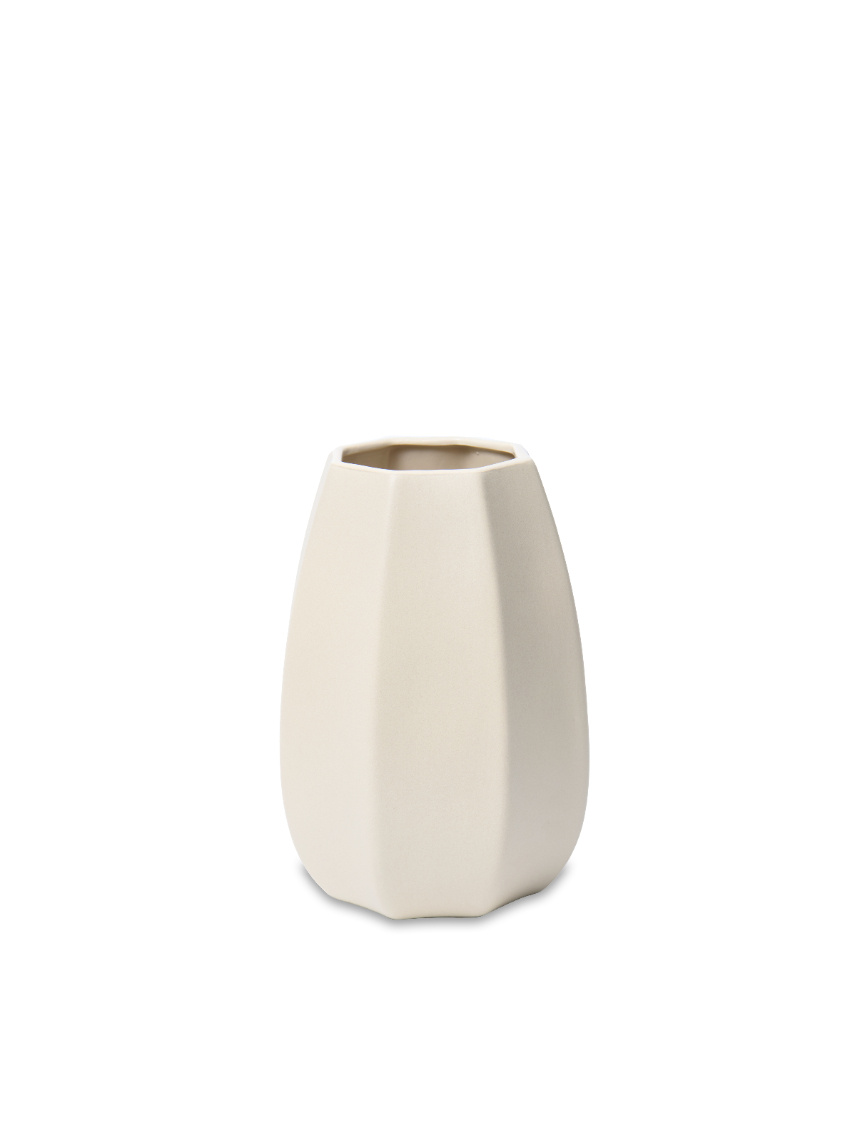 De vaas heeft een moderne 'Sand' kleur en ontleent de luxe look aan de ambachtelijke wijze van produceren.