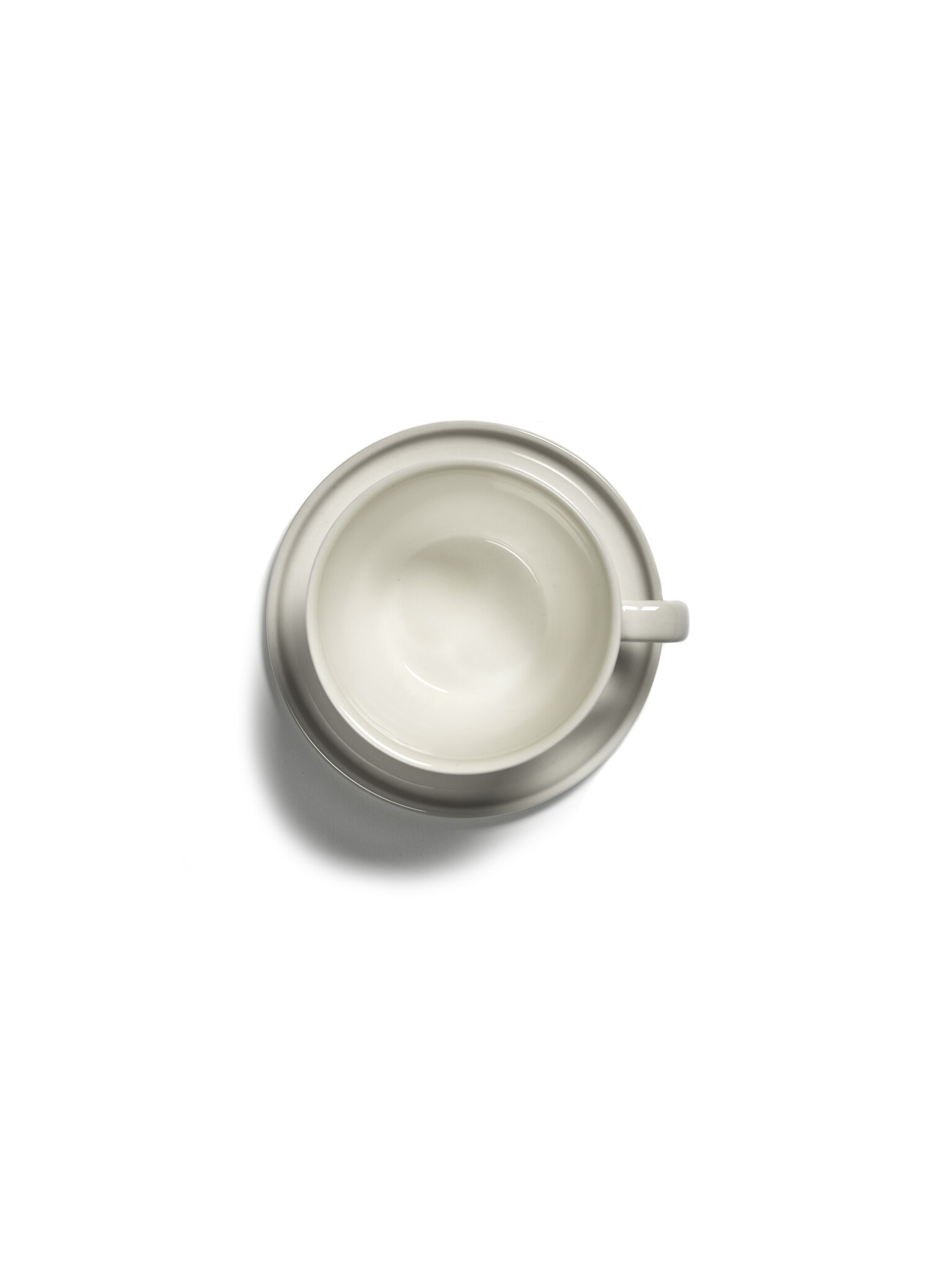 Voor het CENA servies ging architect Vincent Van Duysen aan de slag met de archetypes van een servies. Die werden vervolgens naadloos vertaald naar de alom geprezen Van Duysen signatuur: warm en uitgepuurd. “CENA kleedt de tafel stijlvol aan door haar combinatie van verschillende natuurlijke materialen zoals geglazuurd porselein, hout en gerookt glas. Samen creëren die materialen een warme en opgewekte sfeer die zich perfect laat vertalen naar ieders smaak en lifestyle dankzij mijn gekende kleurenpalet in gebroken wit en greige”, aldus Van Duysen. De kopjes zijn verpakt per 4 in een luxe giftbox.
