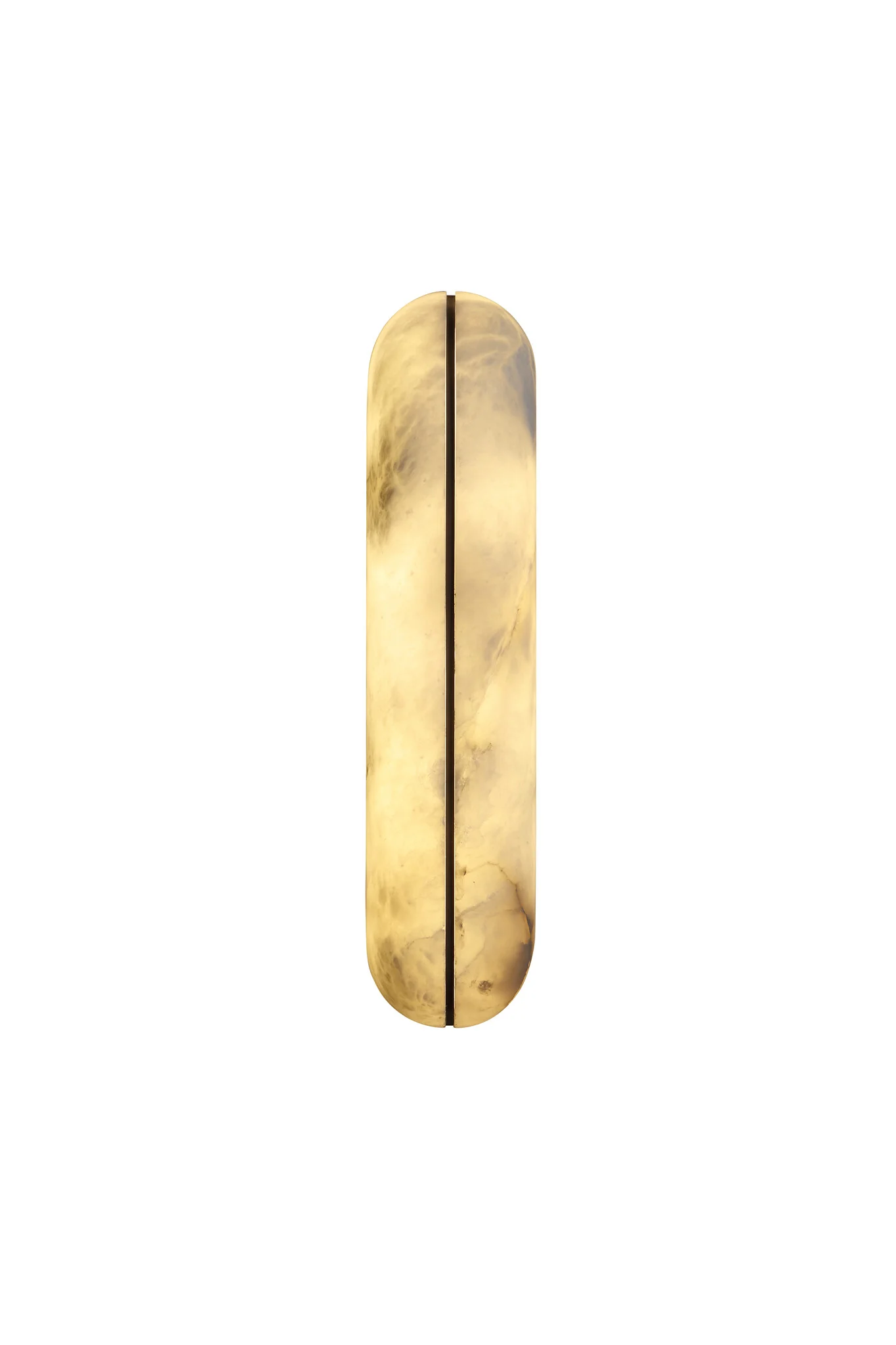 Wandlamp MARIO is een stijlvol vormgegeven lamp met een solide, ronde uitstraling en een verfijnde bronze inleg. De lamp is vervaardigd uit natuurlijk alabaster, wat zorgt voor een prachtig onyx-achtig lichteffect. Het ontwerp is geïnspireerd op de elegante vormen uit de mid-century periode en heeft een hoogwaardige afwerking.